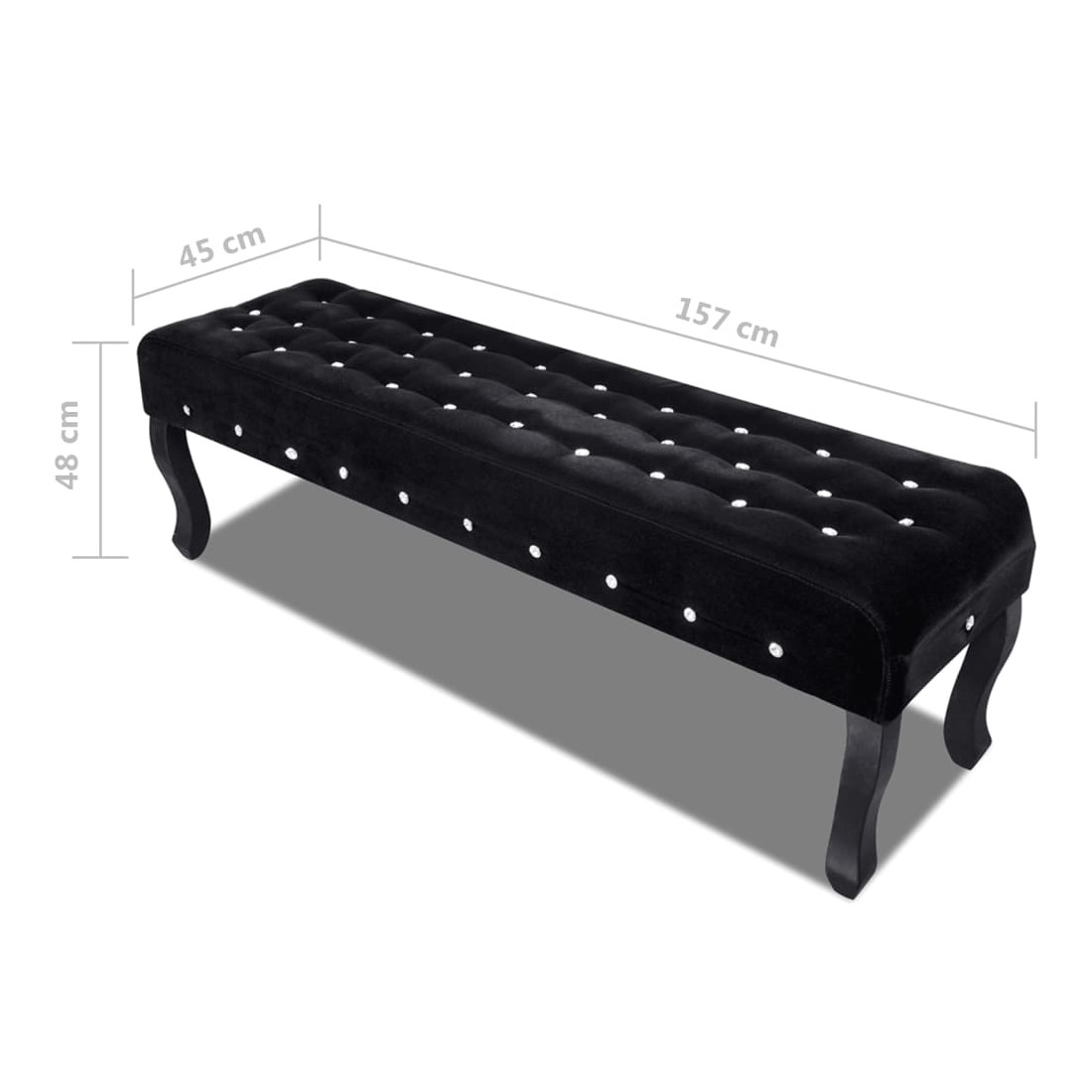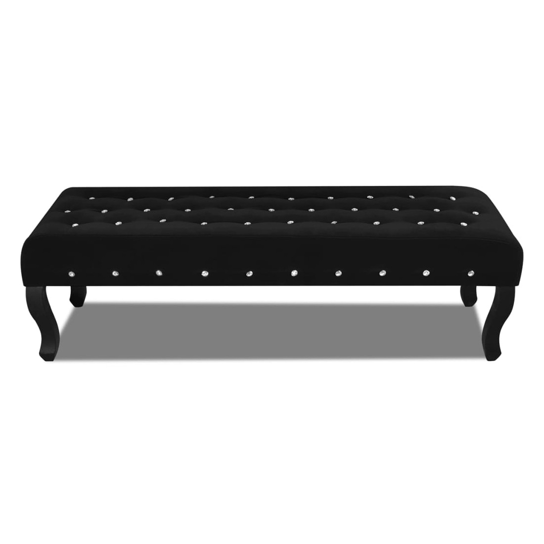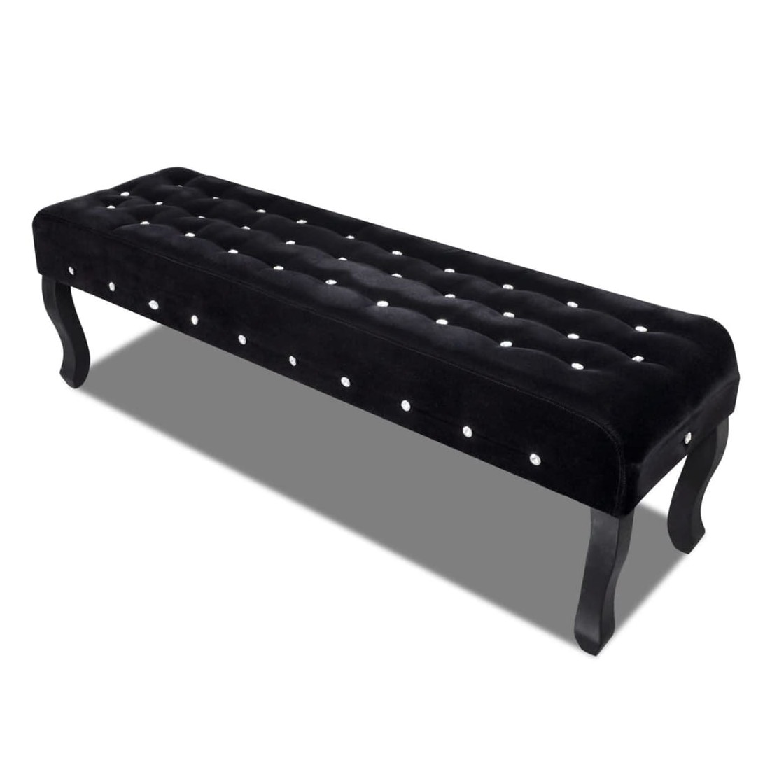 Banc noir tissu velours avec boutons en cristal