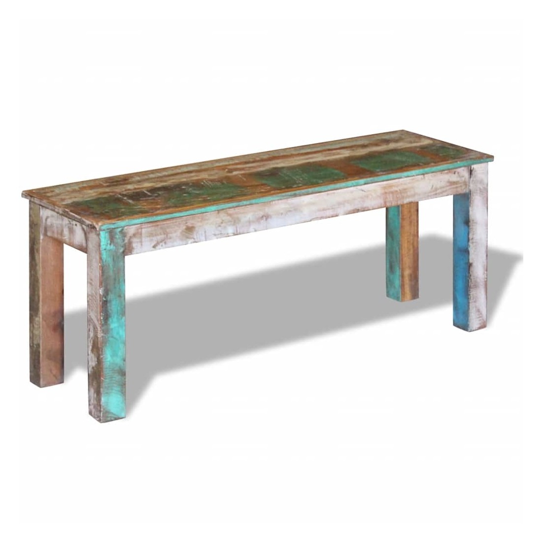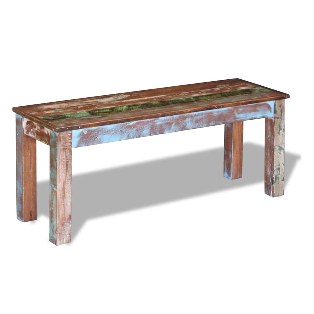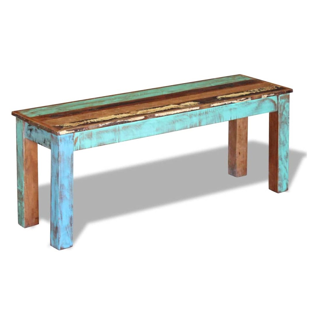 Ce banc en bois de style antique sera un supplément unique à votre maison. Sa construction en bois solide le rend stable, robuste et adapté à un usage quotidien. Ce banc de style vintage est fabriqué en bois massif de récupération, ce qui signifie que chaque meuble est unique et légèrement différent l'un de l'autre. Les meubles en bois de récupération ont les caractéristiques de différents bois comme le teck, le bois de manguier et l'acacia. Le bois de récupération est solide, stable, durable et beau. Des signes d'usure et une structure de grain visible donnent à chaque pièce sa propre histoire et un aspect unique. Le banc est entièrement fait à la main et la qualité de l'artisanat s'ajoute à son style rétro spectaculaire. Chaque étape du processus est effectuée avec le plus grand soin, qu'il s'agisse de la recombinaison, du polissage, de la peinture ou du cirage. Remarque importante : les couleurs varient d'une pièce à l'autre, rendant chacun de nos bancs unique. La livraison est aléatoire, ce qui garantit l'exclusivité et l'individualité de votre produit.