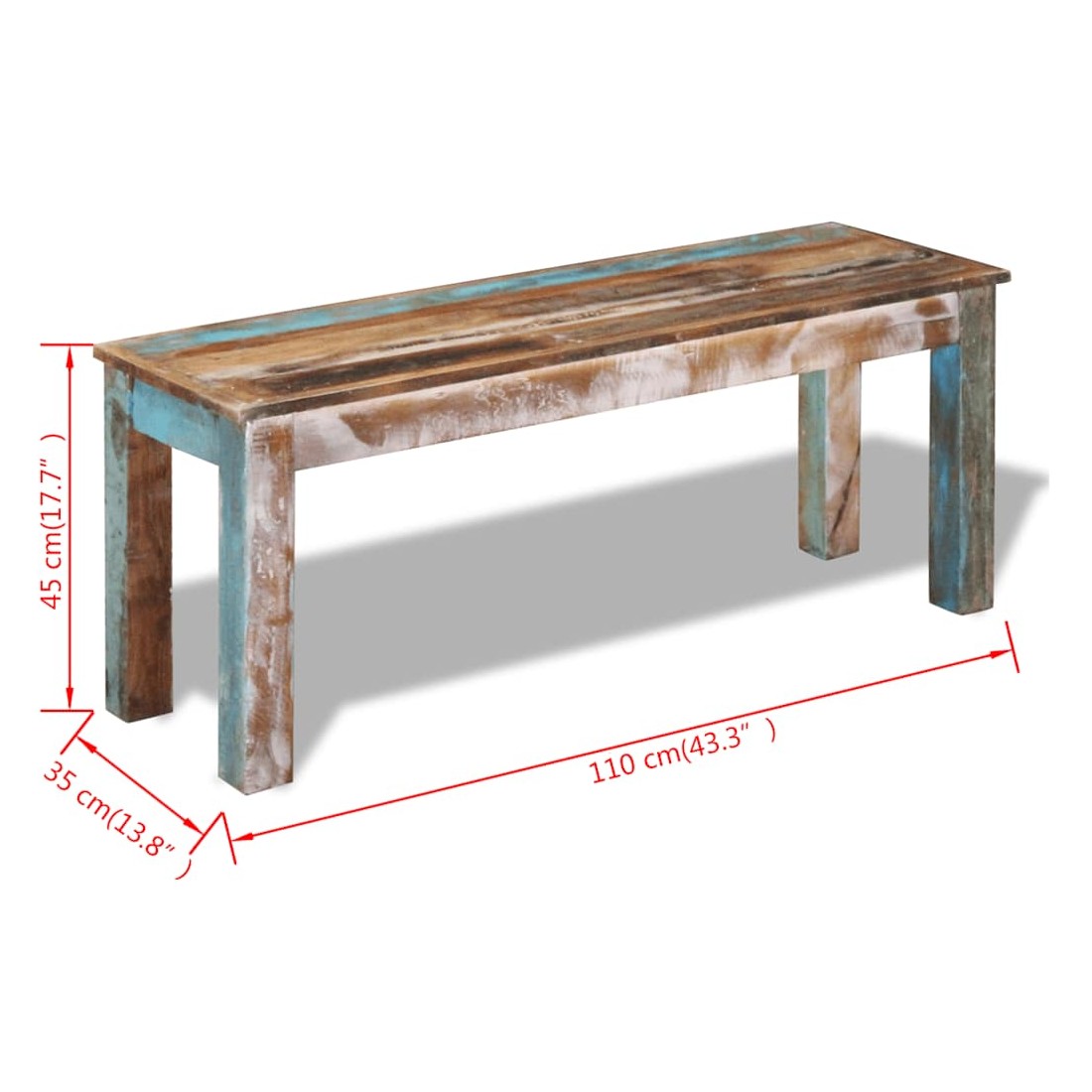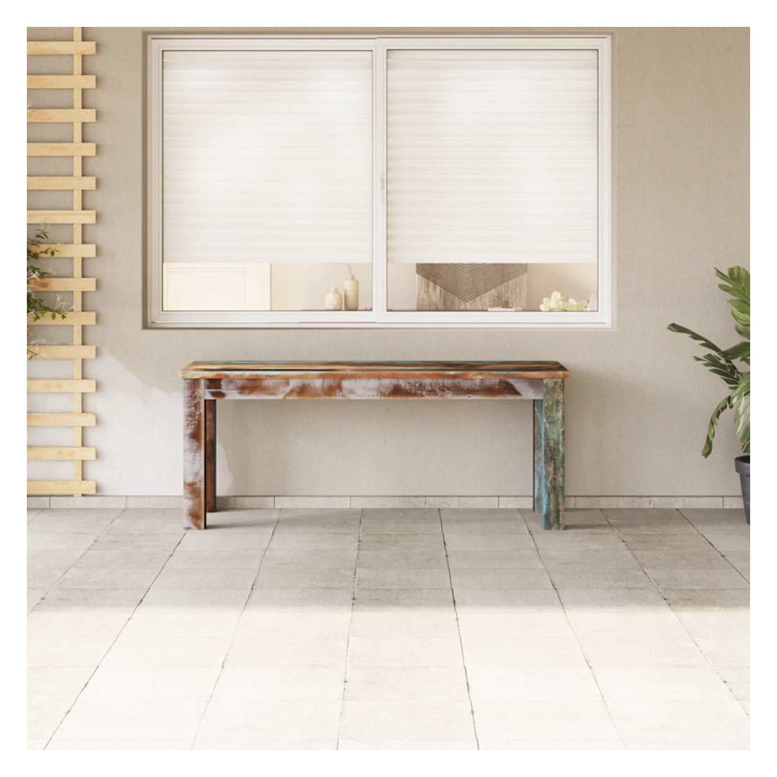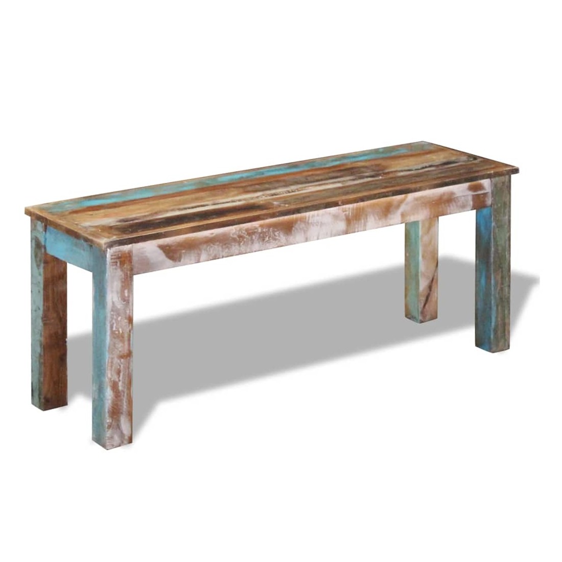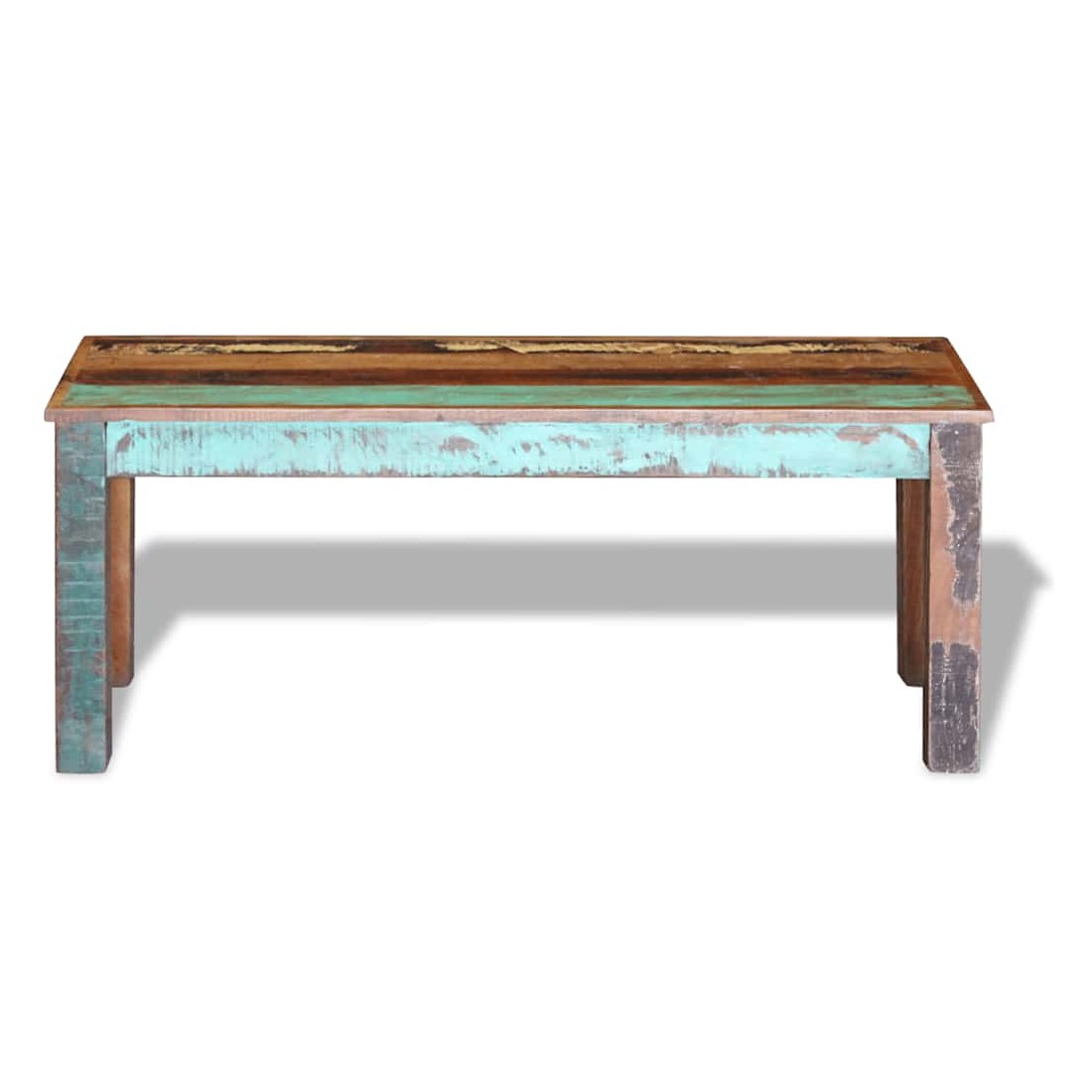 Ce banc en bois de style antique sera un supplément unique à votre maison. Sa construction en bois solide le rend stable, robuste et adapté à un usage quotidien. Ce banc de style vintage est fabriqué en bois massif de récupération, ce qui signifie que chaque meuble est unique et légèrement différent l'un de l'autre. Les meubles en bois de récupération ont les caractéristiques de différents bois comme le teck, le bois de manguier et l'acacia. Le bois de récupération est solide, stable, durable et beau. Des signes d'usure et une structure de grain visible donnent à chaque pièce sa propre histoire et un aspect unique. Le banc est entièrement fait à la main et la qualité de l'artisanat s'ajoute à son style rétro spectaculaire. Chaque étape du processus est effectuée avec le plus grand soin, qu'il s'agisse de la recombinaison, du polissage, de la peinture ou du cirage. Remarque importante : les couleurs varient d'une pièce à l'autre, rendant chacun de nos bancs unique. La livraison est aléatoire, ce qui garantit l'exclusivité et l'individualité de votre produit.