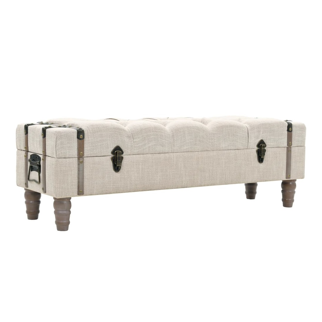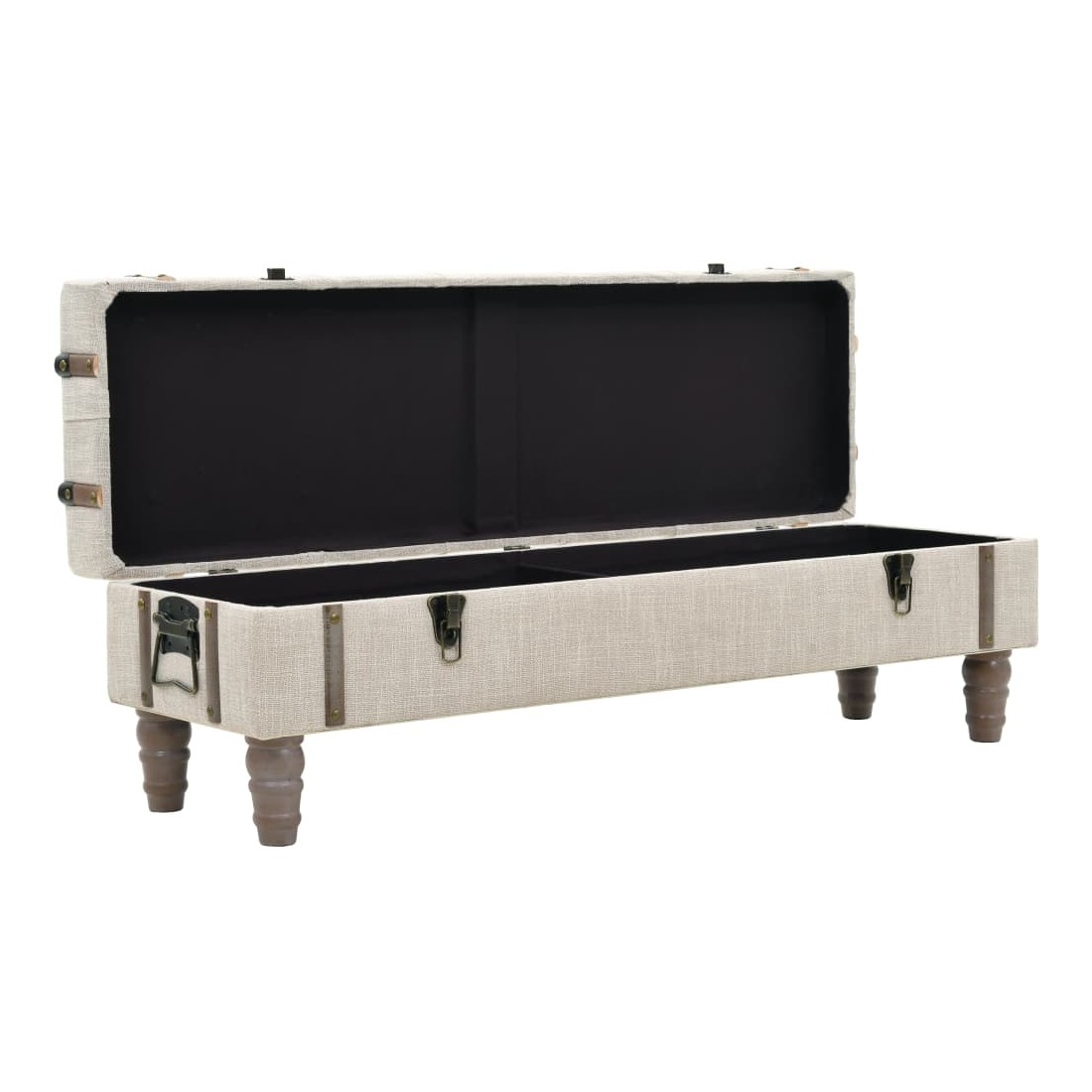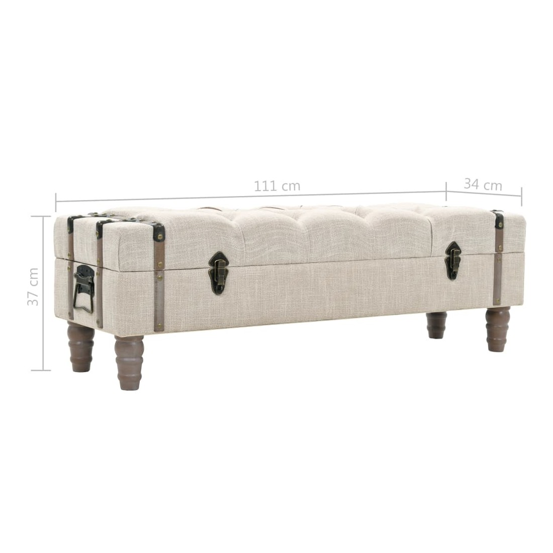 Ajoutez une touche vintage à votre décoration intérieure avec notre banc de rangement. La boîte de rangement est en bois de sapin massif. Il est doté d'une assise rembourrée dans un tissu moderne et de solides pieds en acier. Il y a suffisamment d'espace pour garder une multitude d'objets différents hors de la vue et à portée de main. Grâce à sa poignée durable, le banc sous forme de coffre peut également être facilement déplacé et placé dans n'importe quelle pièce. L'assemblage de cet article est facile.