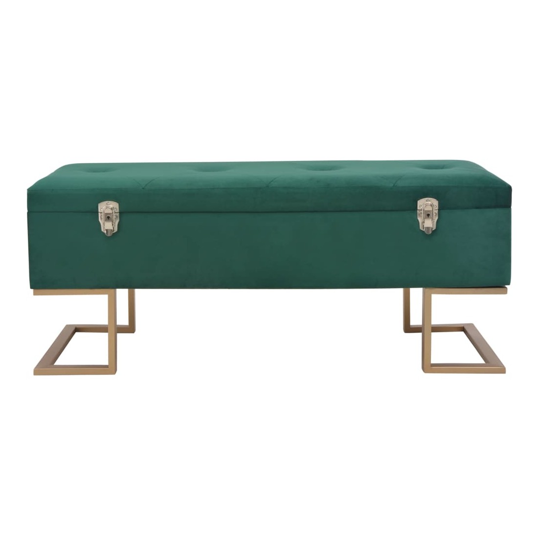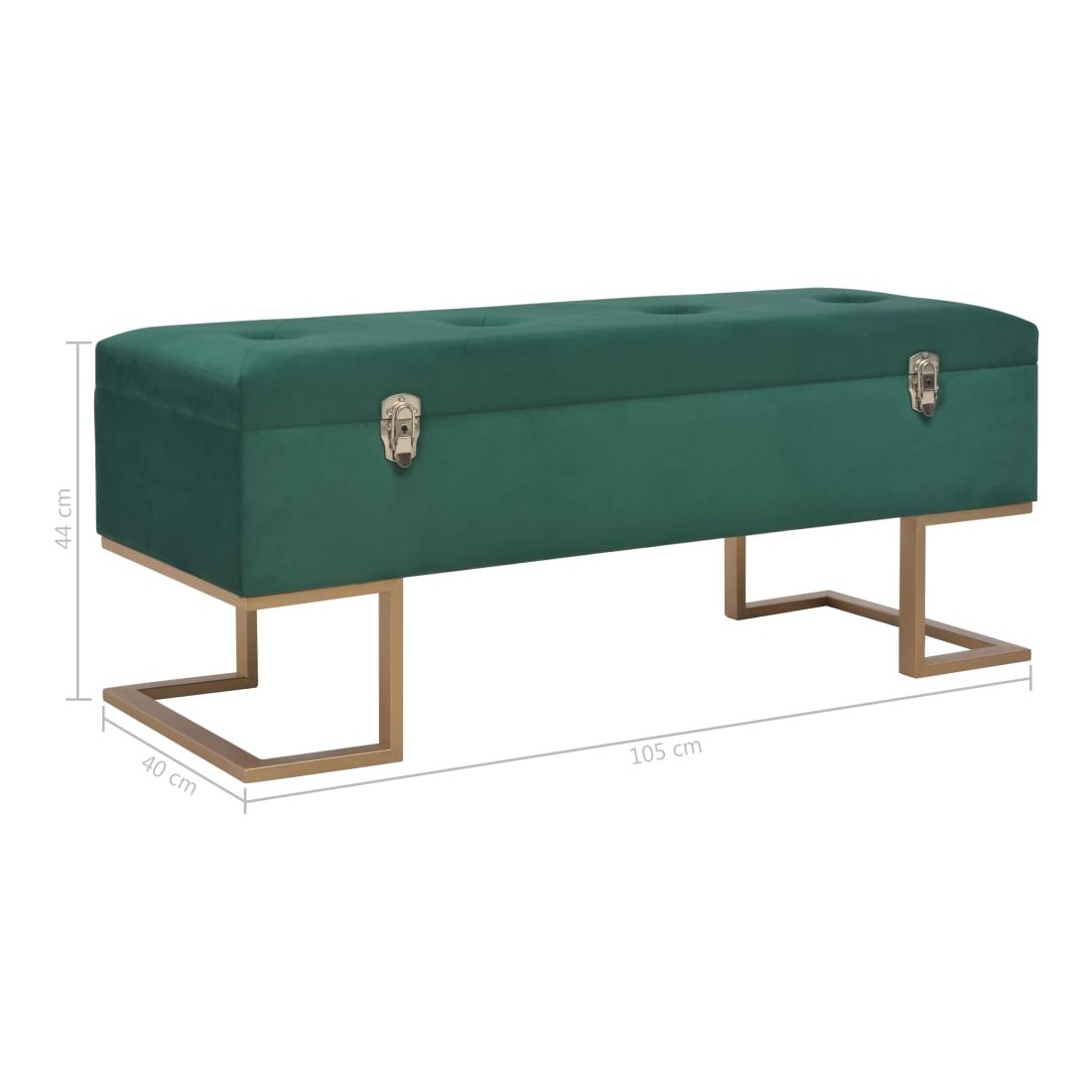 Notre banc en velours s'intégrera à merveille à votre salon ou entrée. La tapisserie en velours vert est douce au toucher et très confortable, donnant une touche de couleur à votre intérieur. Il dispose d'un compartiment de rangement intérieur, qui offre un espace supplémentaire pour ranger vos différents objets. De plus, les pieds en fer enduit de poudre avec une peinture dorée ajoutent à la stabilité et à la durabilité du banc d'entrée. Notre banc décorera avec charme votre espace de vie et sera un élément indispensable de votre chambre. Le banc en velours est facile à assembler.