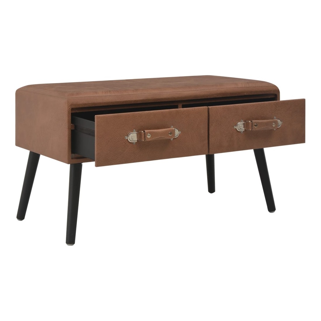 Ce banc en similicuir au design robuste ajoutera une touche d'élégance à votre espace de vie. Ce banc a été réalisé avec soin en similicuir et en pinède solide, ce qui le rendent résistant à l’usure et robuste. Le banc de rangement dispose de 2 tiroirs fonctionnant sans à-coups, qui offrent amplement d'espace pour garder des objets plus petits rangés et accessibles. Il peut également être utilisé comme table de chevet ou table basse. Le banc est facile à assembler.