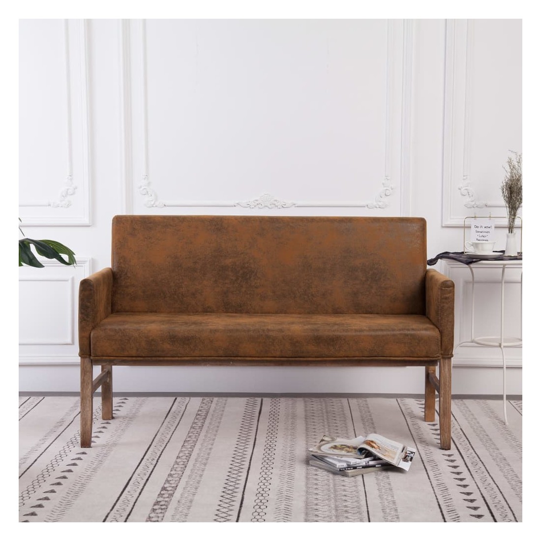 Notre banc à 2 places allie style et confort, et son rembourrage en similicuir suédé ajoutera une touche de luxe à votre intérieur. Le banc se distingue par un cadre en bois robuste et durable. De plus, l'assise et le dossier sont si confortables que le banc est l'endroit idéal pour vous détendre. Le banc est facile à assembler.
