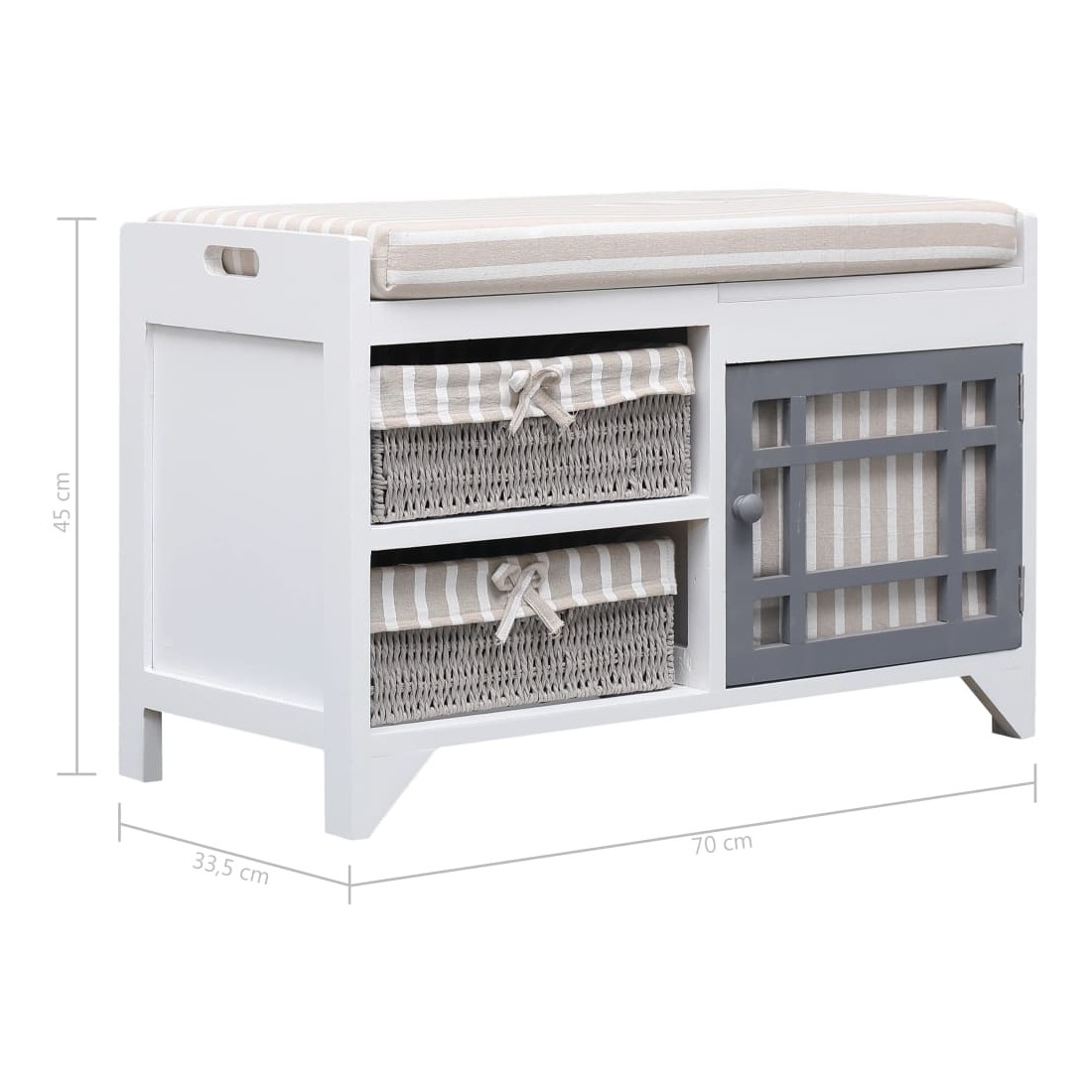 Banc d'entrée Blanc 70 x 33,5 x 45 cm Bois de Paulownia
