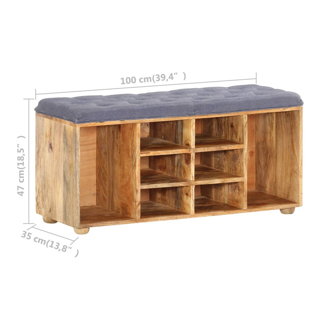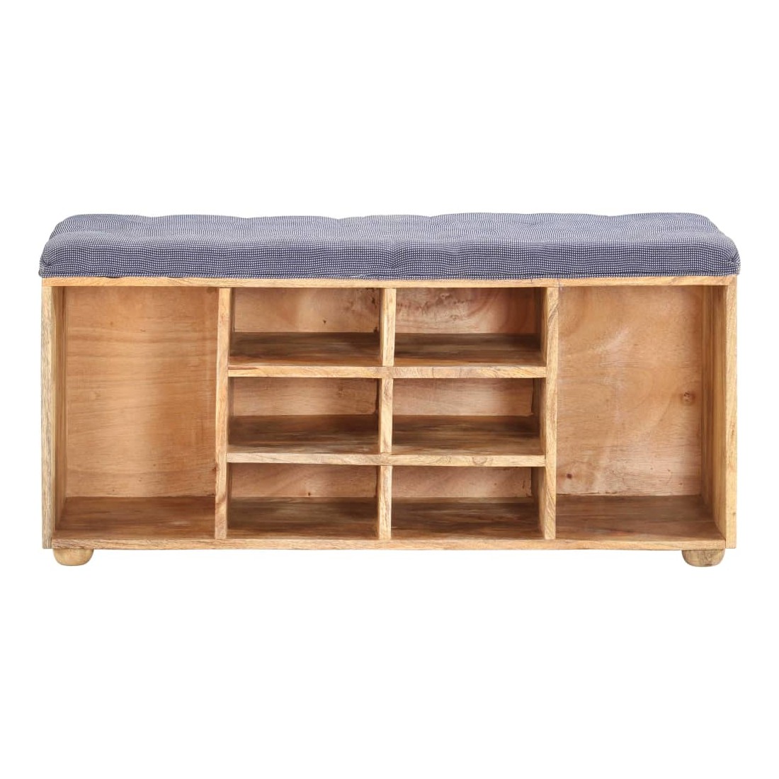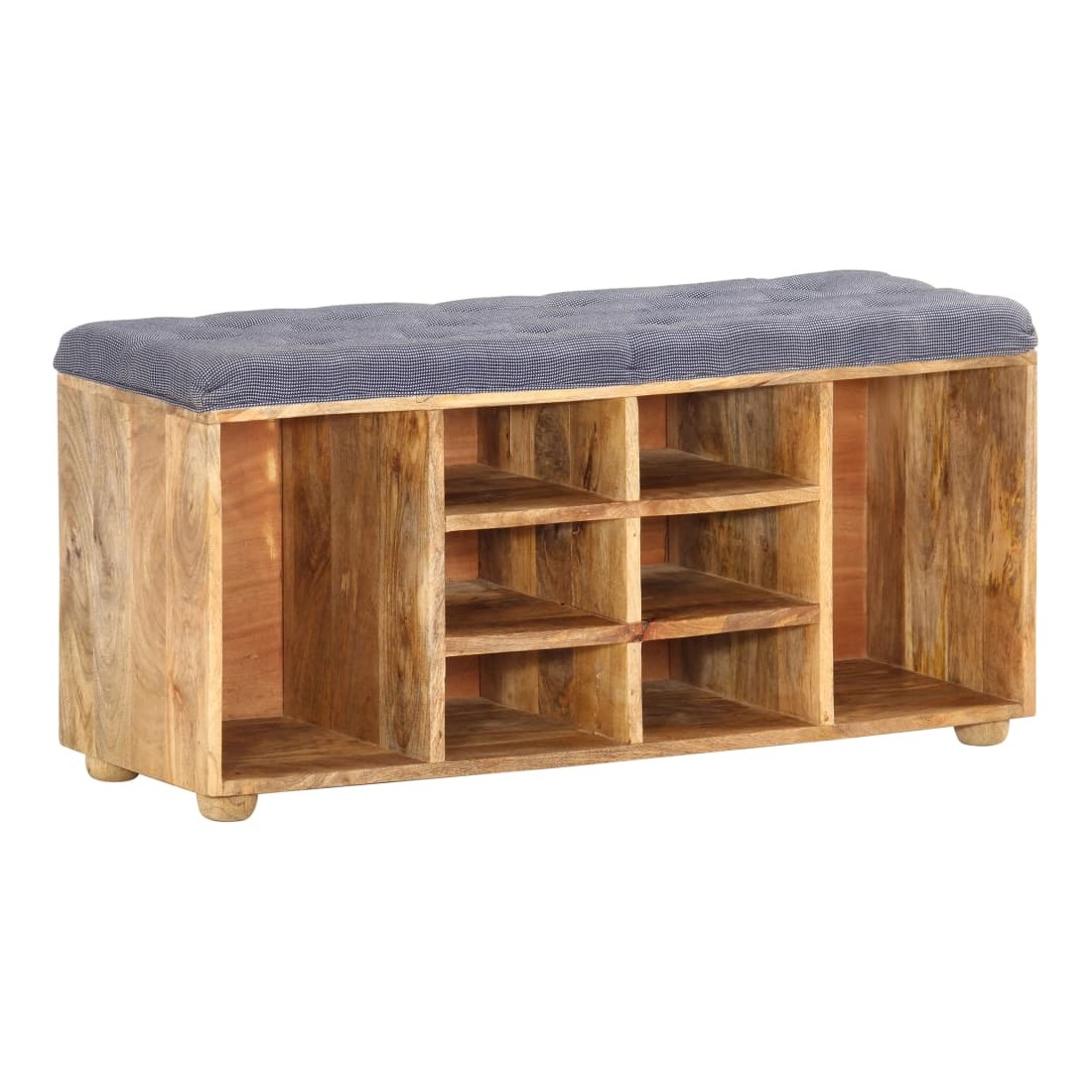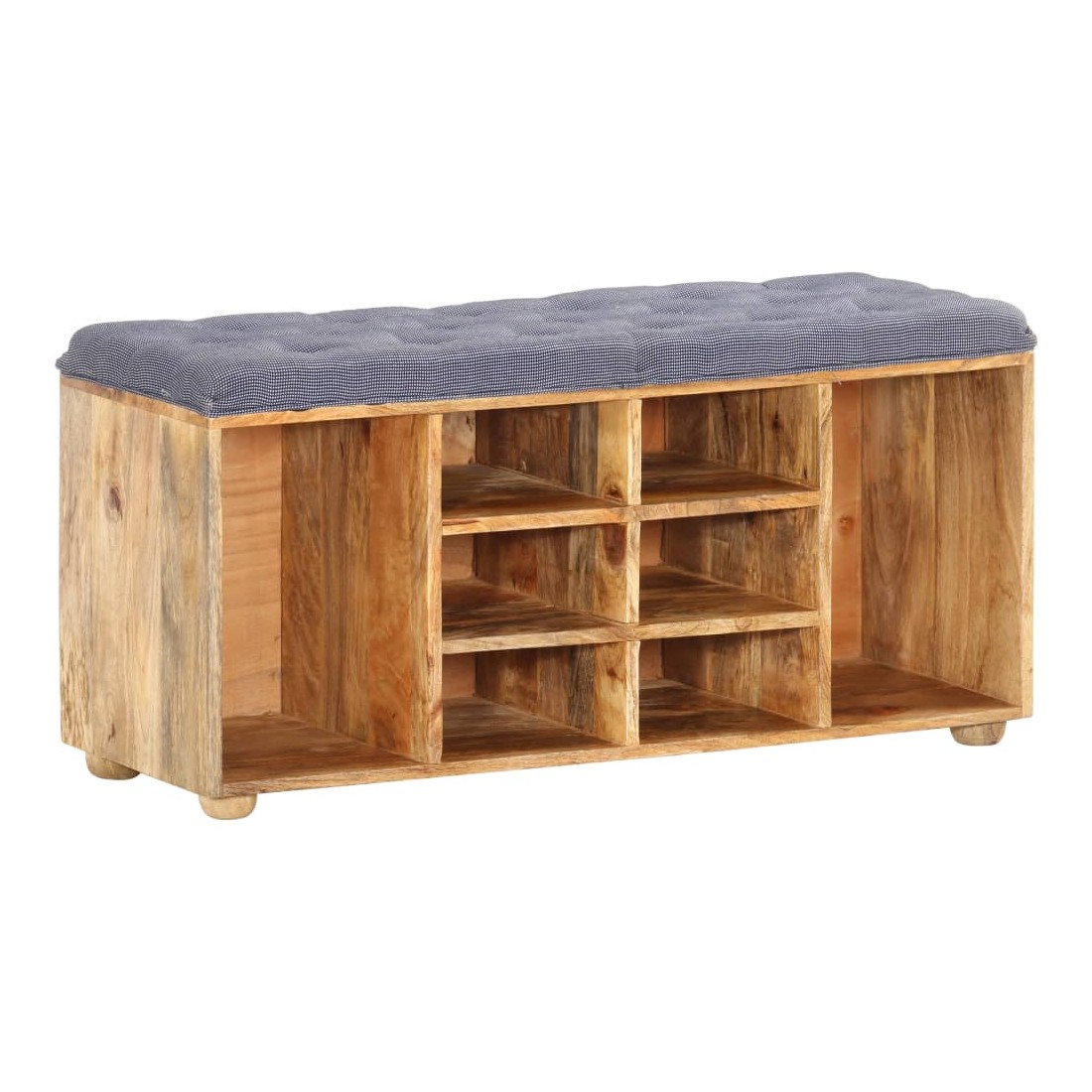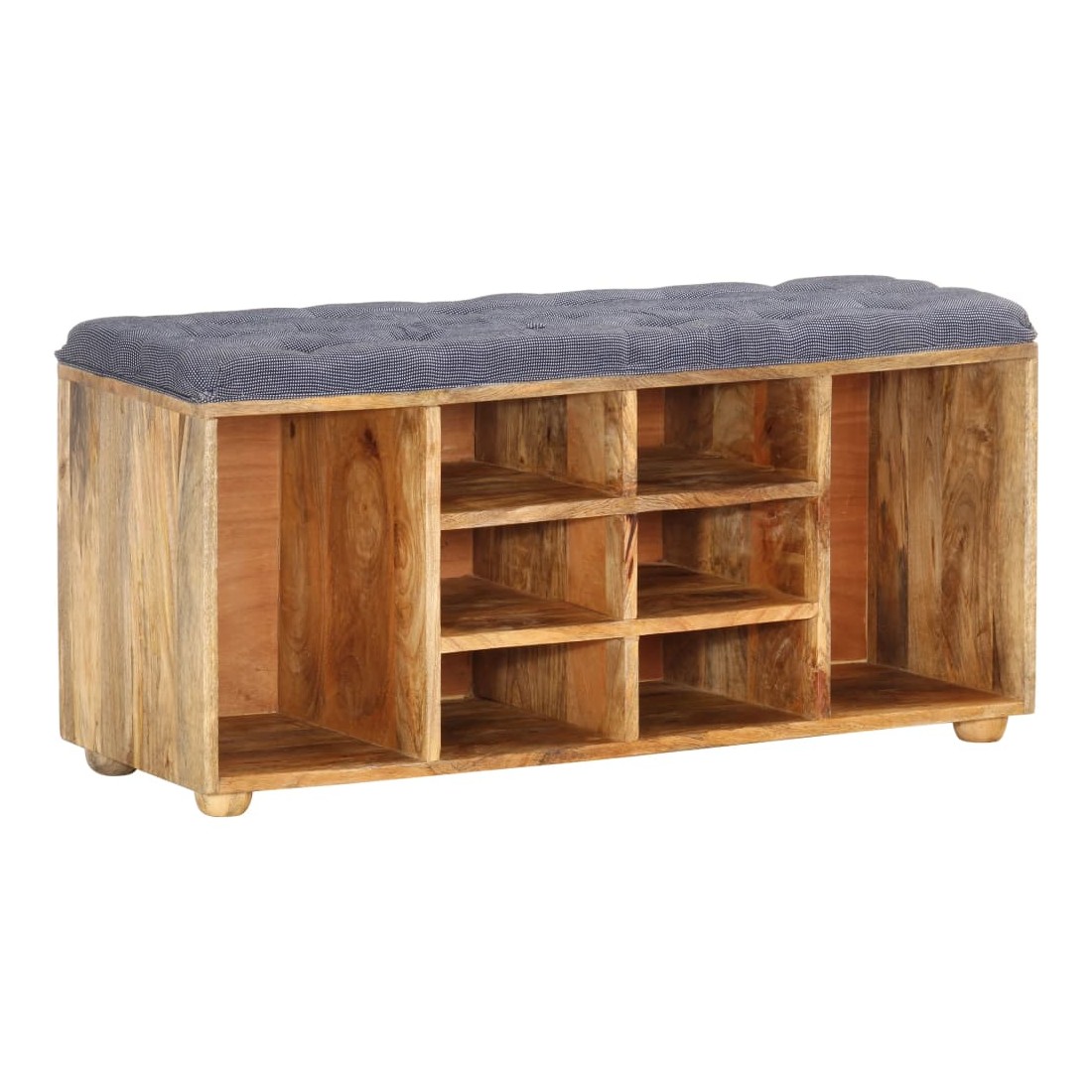 Ajoutez une touche de charme rustique à votre maison avec ce banc de rangement simple mais élégant ! Le banc de couloir est fait de bois de manguier massif et de tissu, ce qui le rend durable et stable. Le dessus rembourré peut vous offrir un siège moelleux. De plus, ce banc d'entrée est conçu avec 8 compartiments, qui offrent un espace suffisant pour garder les petits objets organisés et à portée de main. Remarque importante : la couleur et les grains peuvent varier d'une pièce à l'autre, ce qui rend chaque pièce unique. La livraison est également aléatoire.