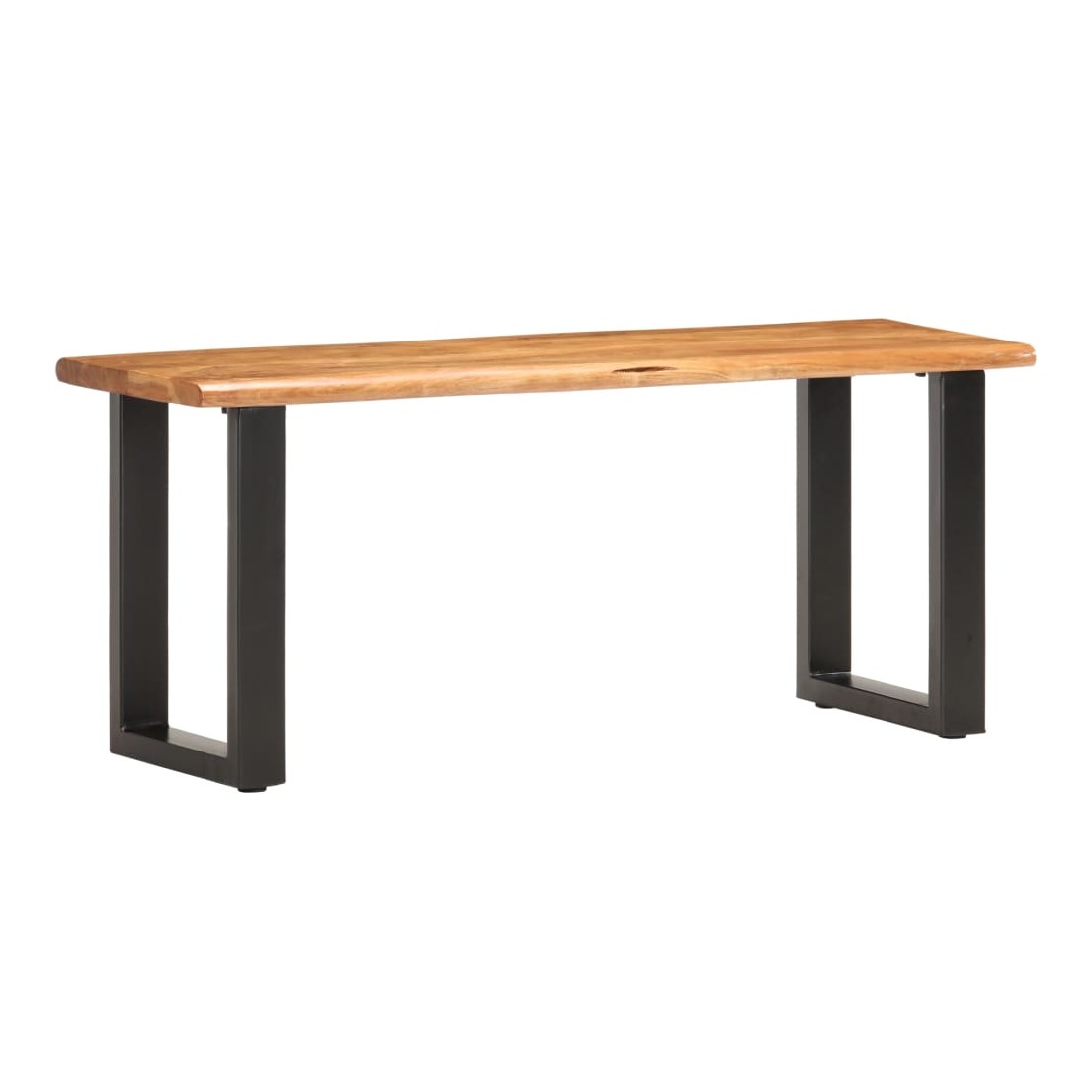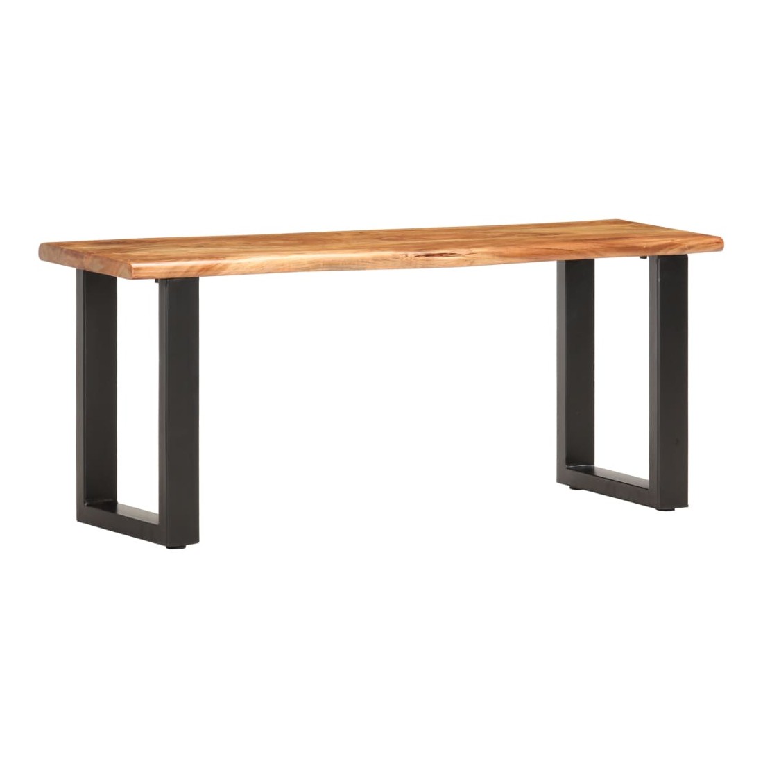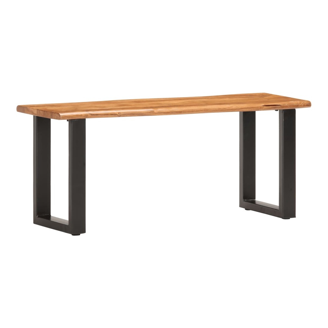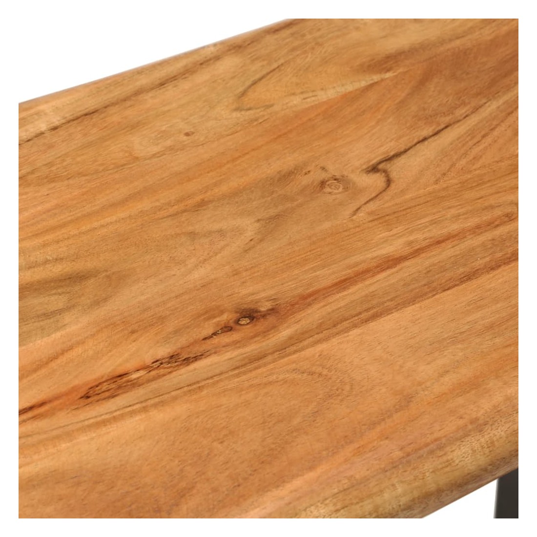 Le banc en bois massif se caractérise par un style industriel cool qui apportera une touche supplémentaire à votre salon ou à votre entrée. Le dessus de banc est fait de bois d'acacia massif, un type de bois dur et de bois tropical, ce qui le rend extrêmement robuste et durable. Le bord de bois suit la forme naturelle du tronc d'arbre, augmentant la beauté du banc. Le savoir-faire et les magnifiques veines du bois rendent chaque meuble unique et légèrement différent l'un de l'autre. De plus, les pieds en acier enduit de poudre ajoutent au style industriel et rendent le banc considérablement stable. Ce banc d'entrée est également facile à assembler. Remarque importante : les couleurs et les grains peuvent varier d'une pièce à l'autre, rendant chaque pièce unique. La livraison est aléatoire, ce qui garantit l'exclusivité et l'individualité de votre produit.