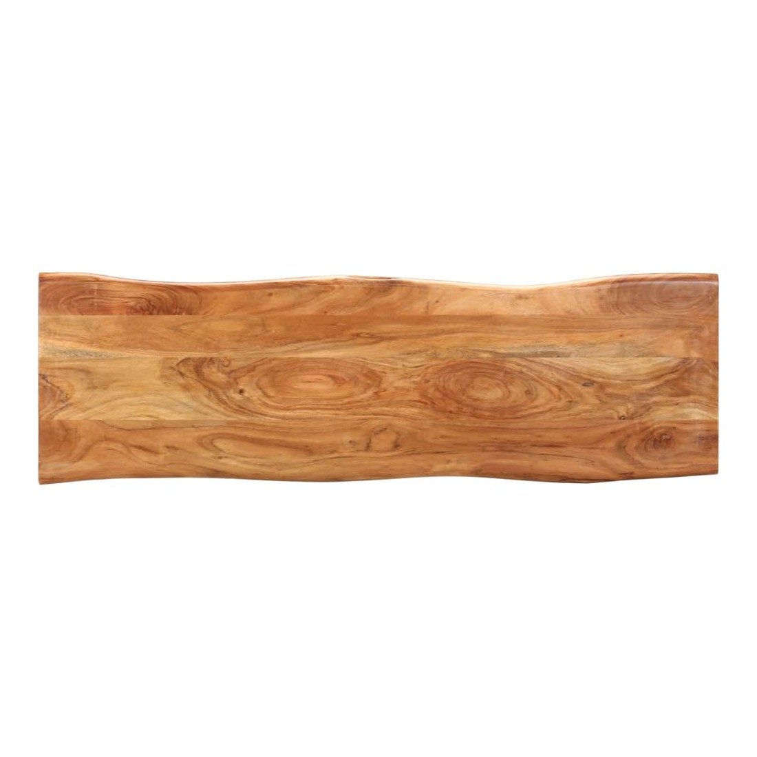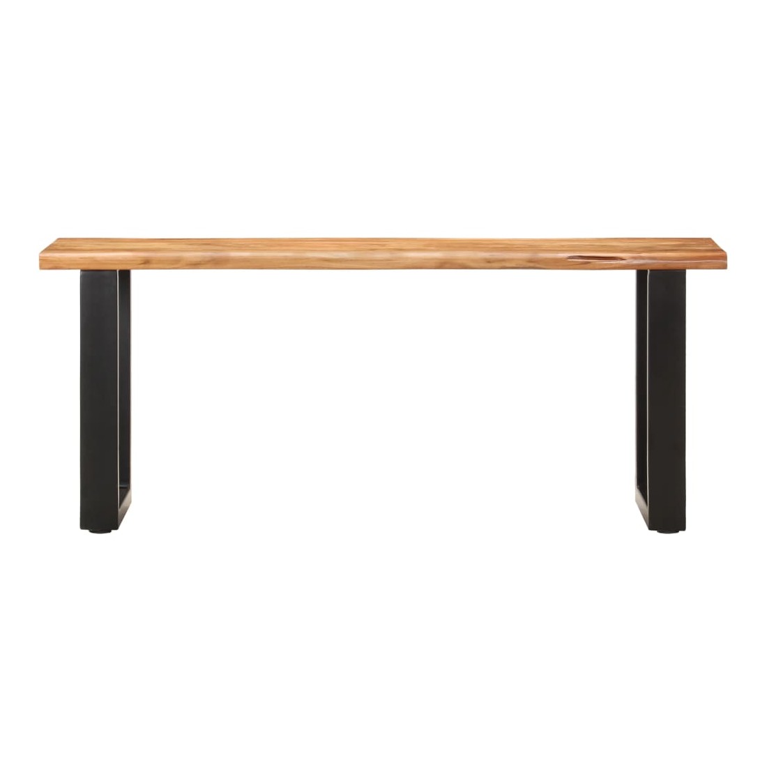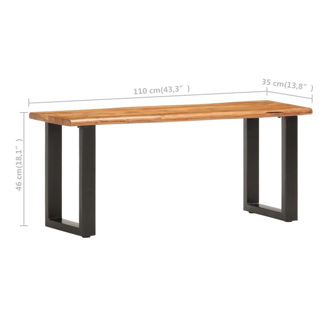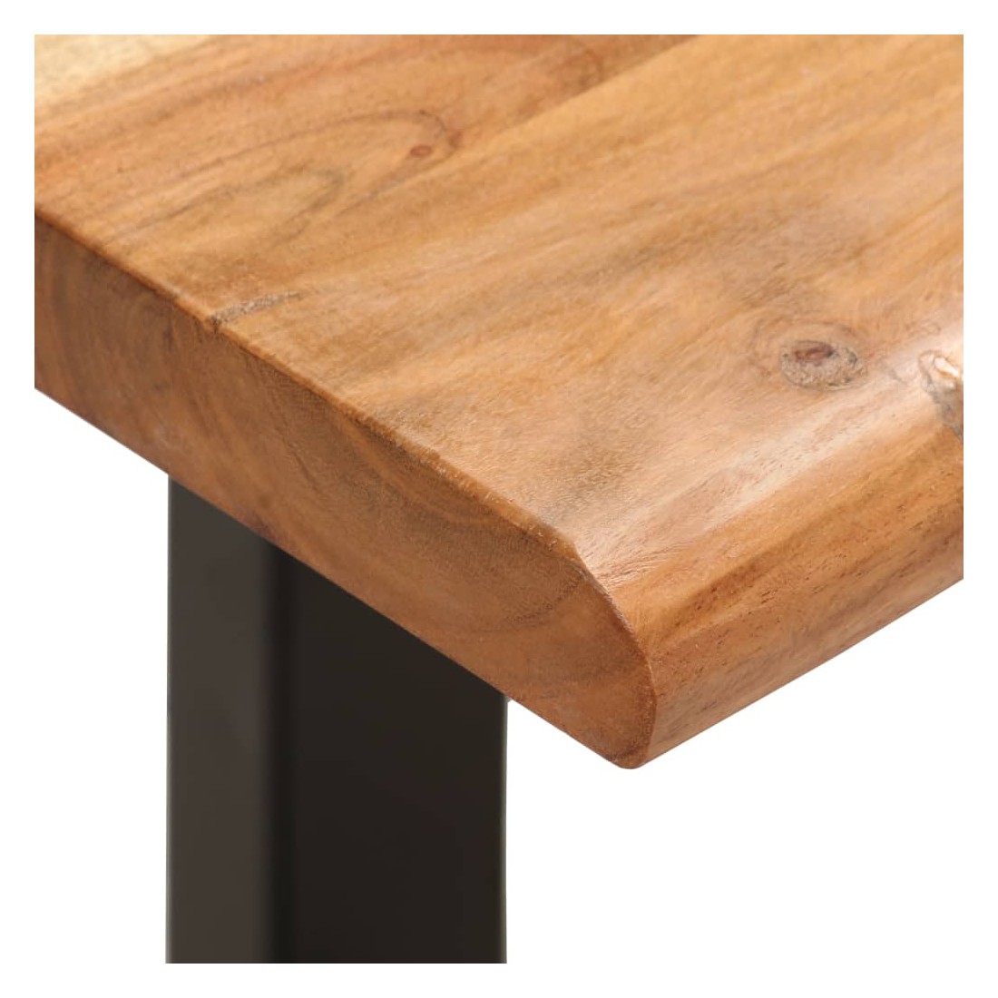 Le banc en bois massif se caractérise par un style industriel cool qui apportera une touche supplémentaire à votre salon ou à votre entrée. Le dessus de banc est fait de bois d'acacia massif, un type de bois dur et de bois tropical, ce qui le rend extrêmement robuste et durable. Le bord de bois suit la forme naturelle du tronc d'arbre, augmentant la beauté du banc. Le savoir-faire et les magnifiques veines du bois rendent chaque meuble unique et légèrement différent l'un de l'autre. De plus, les pieds en acier enduit de poudre ajoutent au style industriel et rendent le banc considérablement stable. Ce banc d'entrée est également facile à assembler. Remarque importante : les couleurs et les grains peuvent varier d'une pièce à l'autre, rendant chaque pièce unique. La livraison est aléatoire, ce qui garantit l'exclusivité et l'individualité de votre produit.