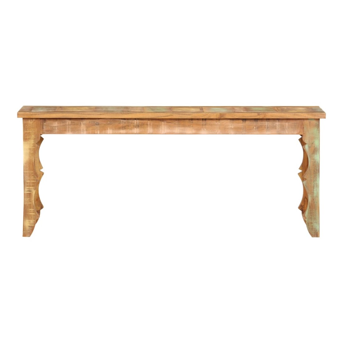 Ce banc restauré de style antique sera un supplément unique à votre pièce. Sa construction en bois massif le rend stable pour pouvoir y s'asseoir. Fabriqué en bois de récupération, ce banc est solide, durable et beau, et présente les caractéristiques de différents bois tels que le teck, le bois de manguier, l'acacia, le bois recyclé, le bois dur, etc. Chaque pièce de ce meuble est unique et légèrement différente l'une de l'autre. Les signes d'usure et la structure visible du grain donnent à chaque pièce sa propre histoire et son apparence. Ces meubles d'assise sont entièrement fabriqués à la main. Chaque étape du processus est réalisée avec le plus grand soin, qu'il s'agisse du polissage, de la peinture ou du laquage. Notre banc est également facile à assembler. Remarque importante : l