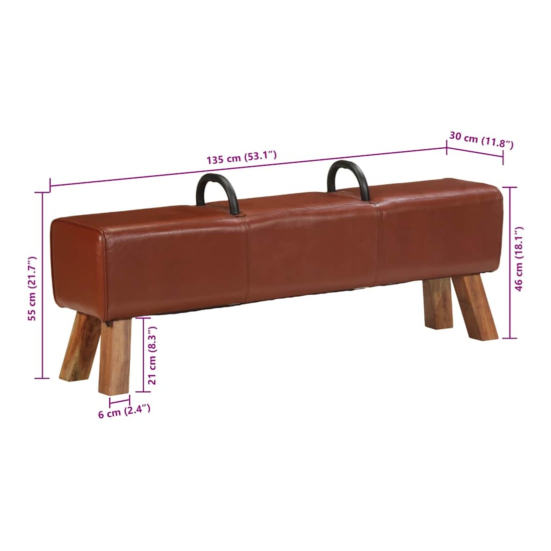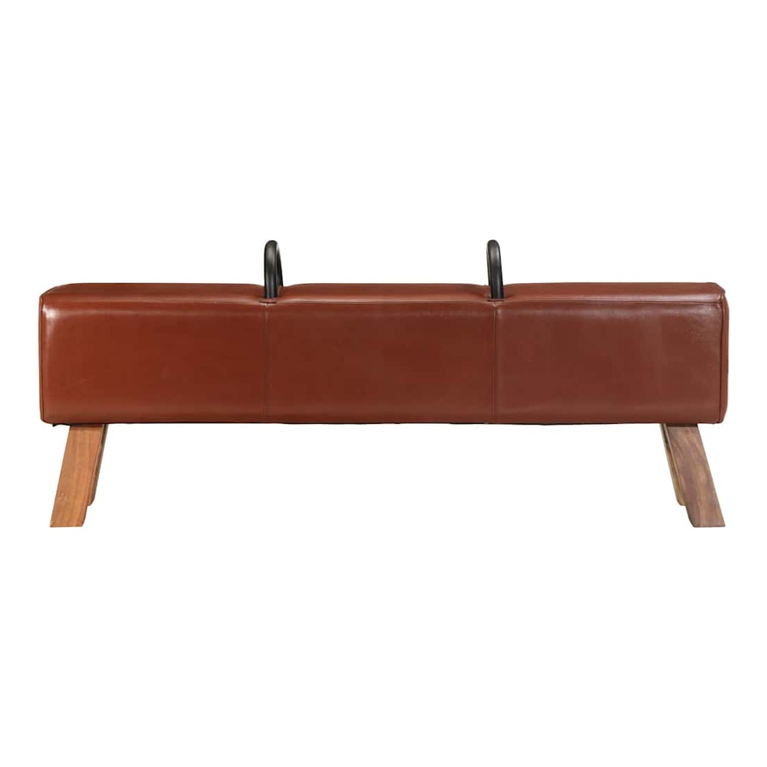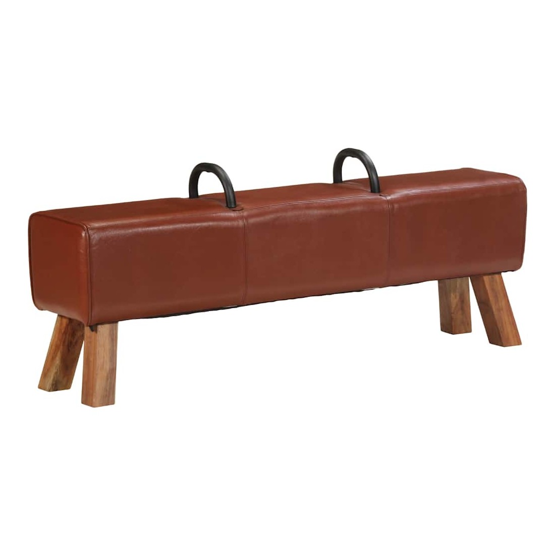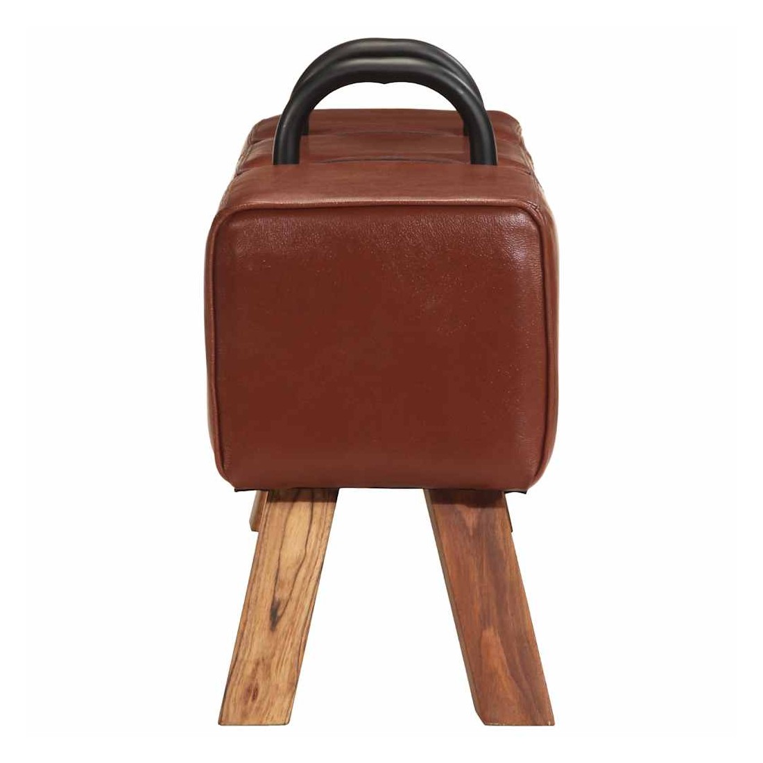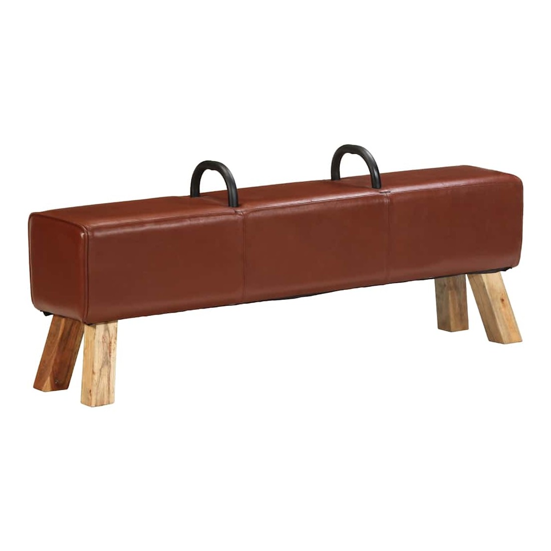 Notre banc dans le style de gymnastique à l'ancienne est certainement une pièce unique et moyen d'attirer l'attention dans votre maison ou d’autres espaces. Les poignées métalliques élégantes forment un grand contraste visuel avec le revêtement en cuir de chèvre véritable. Ce banc sous forme de cheval d'arçon avec pieds en bois massif à veinure naturelle, assure un excellent maintien. Le rembourrage doux au toucher en cuir de chèvre véritable et rembourrage épais assurent une assise confortable et font du banc une option pratique et chic.