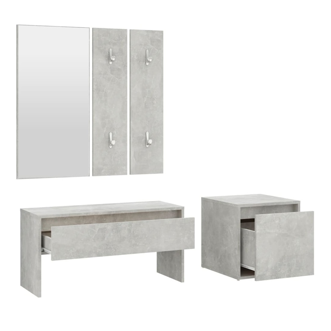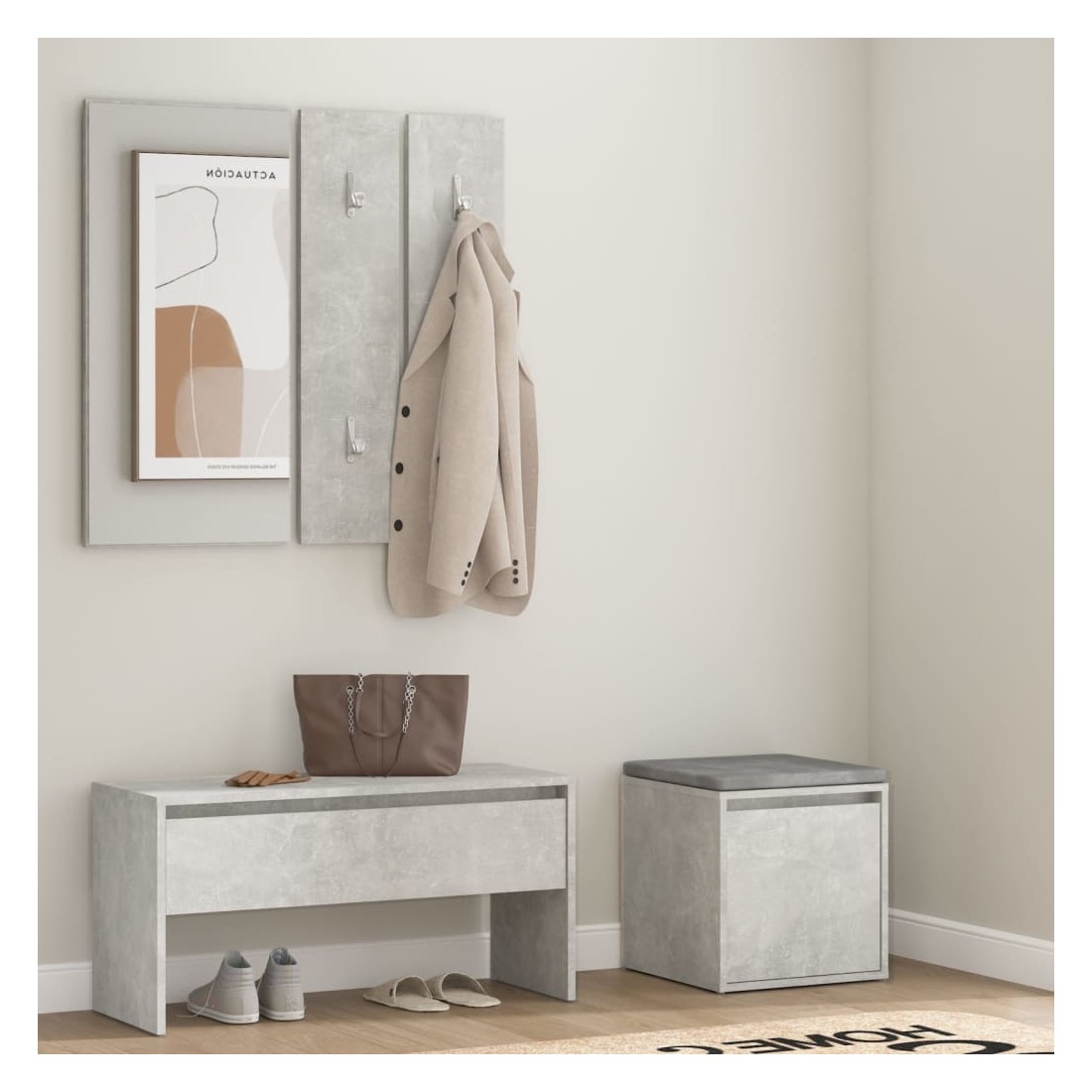 Créez un environnement chaleureux et accueillant juste à côté de votre porte avec cet ensemble de meubles de couloir ! Matériau robuste : le bois d'ingénierie est d'une qualité exceptionnelle avec une surface lisse et présente également résistance, stabilité et résistance à l'humidité.Grand espace de rangement : le banc d'entrée et le tiroir boîte disposent d'un tiroir, offrant un grand espace de rangement pour ranger les chaussures et autres articles essentiels.Design multifonctionnel : le banc et la boîte de couloir peuvent être utilisés à la fois comme rangement et comme un endroit pour ranger vos objets décoratifs préférés dans votre espace de vie. Ils peuvent également servir de sièges lorsque vous enfilez ou retirez vos chaussures.Design pratique : le miroir pratique et les porte-manteaux sont pratiques pour suspendre vos vêtements et regarder dans le miroir. Remarque :Chaque produit est livré avec un manuel de montage dans la boîte pour un montage facile.Les vis et les chevilles pour l'intérieur du mur ne sont pas incluses. Recherchez et utilisez des vis et des chevilles adaptées à vos murs. Si vous n'êtes pas sûr, demandez conseil à un professionnel. Lisez et suivez attentivement chaque étape des instructions.