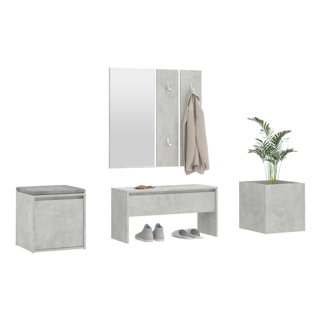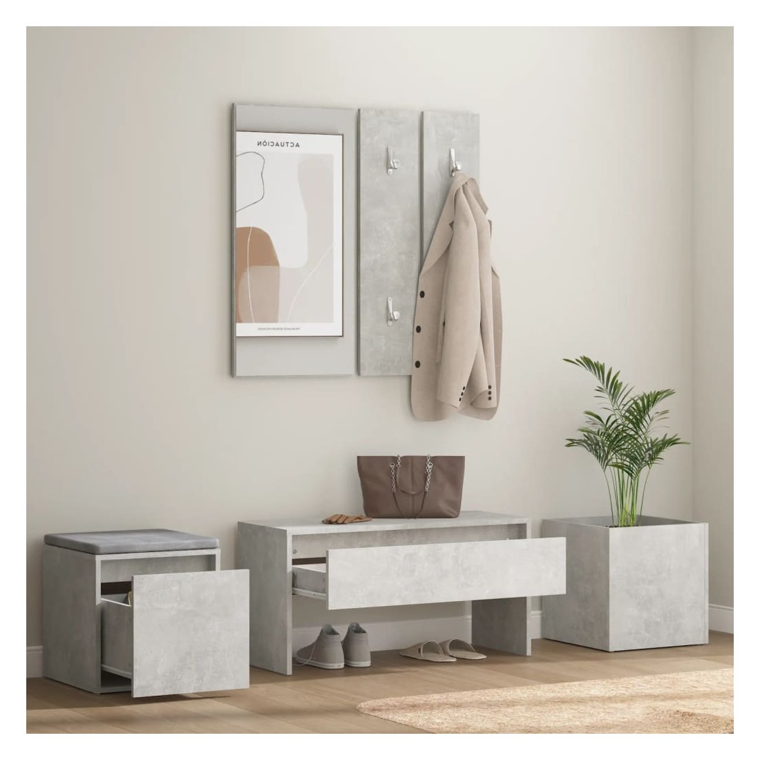 Créez un environnement chaleureux et accueillant juste à côté de votre porte avec cet ensemble de meubles de couloir ! Matériau robuste : le bois d'ingénierie est d'une qualité exceptionnelle avec une surface lisse et présente également résistance, stabilité et résistance à l'humidité.Grand espace de rangement : le banc d'entrée et la boîte de rangement avec un tiroir offrent un grand espace de rangement pour ranger des chaussures et d'autres articles essentiels.Utilisation multifonctionnelle : le banc et le tiroir à boîte peuvent être utilisés à la fois comme rangement et comme un endroit pour ranger vos objets décoratifs préférés dans votre espace de vie. Ils peuvent également servir de sièges lorsque vous enfilez ou retirez vos chaussures.Design pratique : le miroir pratique et les porte-manteaux sont pratiques pour suspendre vos vêtements et regarder dans le miroir.Belle jardinière : la jardinière est idéale pour faire pousser des plantes et des fleurs, ce qui en fait un excellent supplément à votre intérieur. Remarque :Chaque produit est livré avec un manuel de montage dans la boîte pour un montage facile.Les vis et les chevilles pour l'intérieur du mur ne sont pas incluses. Recherchez et utilisez des vis et des chevilles adaptées à vos murs. Si vous n'êtes pas sûr, demandez conseil à un professionnel. Lisez et suivez attentivement chaque étape des instructions.