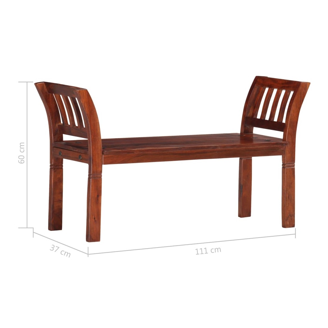 Ce banc en bois de qualité fera une addition captivante dans le couloir, ou cuisine et salle à manger. Fabriqué en bois d'acacia massif avec une finition en noyer, ce banc est très solide et durable. Chaque étape du processus est réalisée avec le plus grand soin, que ce soit le polissage, la peinture ou le laquage. De plus, les accoudoirs incurvés donnent au banc un aspect élégant. Le banc de couloir est facile à assembler. Remarque importante : les couleurs et les grains varient d'une pièce à l'autre, rendant chaque pièce unique ; la livraison est aléatoire.
