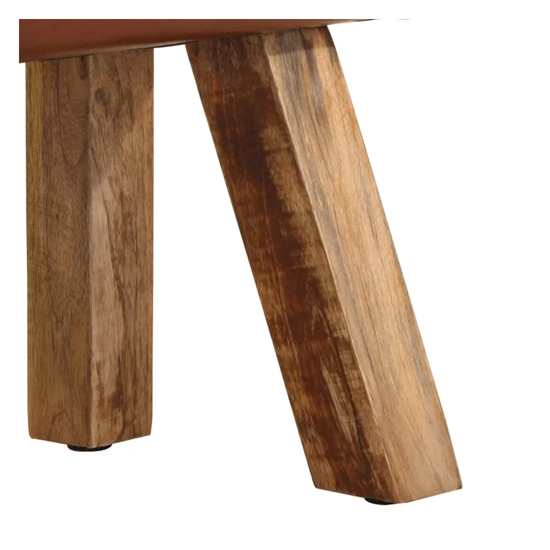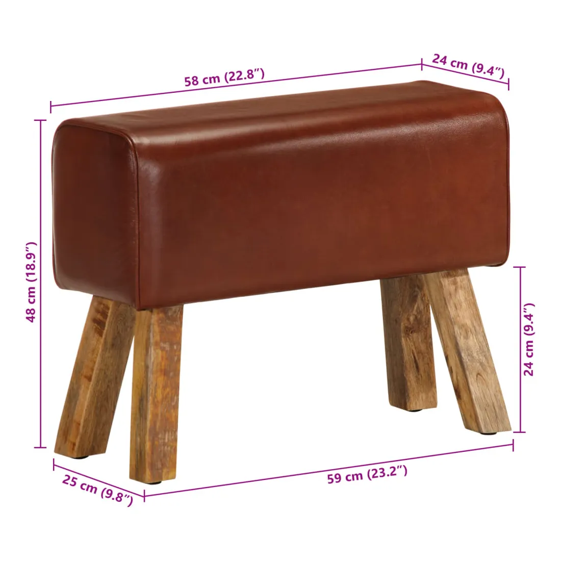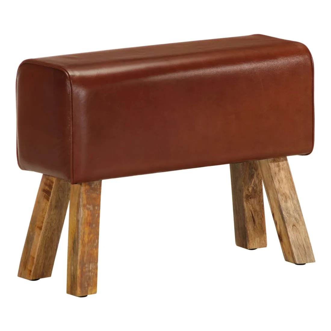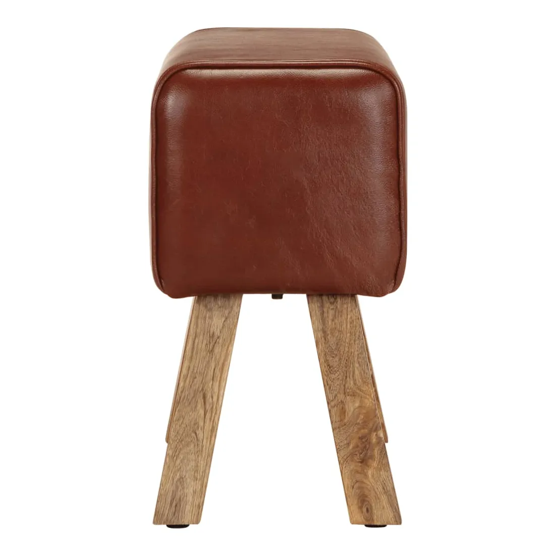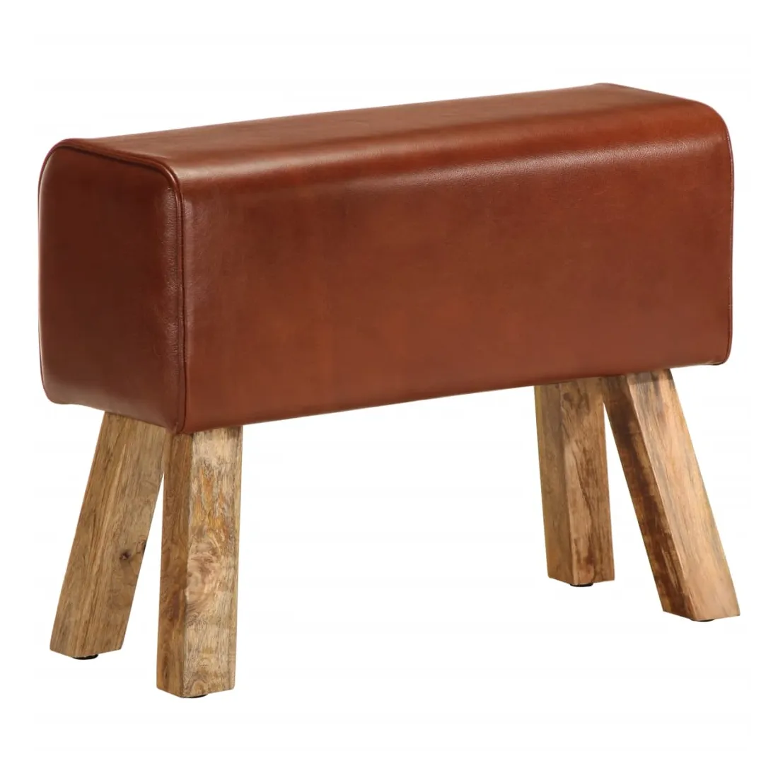 Créez une ambiance légèrement vintage dans votre espace de vie avec ce banc de bok de gymnastique en cuir véritable. Ce banc est doté d’un siège en cuir véritable résistant à l'usure, offrant une excellente expérience. Le banc de saut de cheval est soutenu par des pieds en bois de manguier massif, ce qui le rend stable et robuste. En outre, le rembourrage épais ajoute un confort supplémentaire.