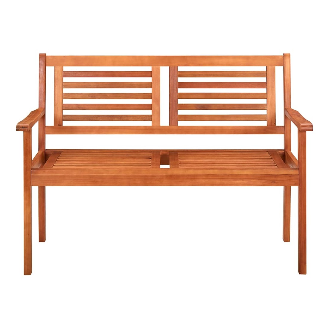 Ce banc en bois d'eucalyptus massif, avec coussin, ajoute une touche naturelle à votre espace de vie extérieur ! Il est conçu pour être le point de mire de votre jardin, terrasse ou patio. Ce banc de jardin est fait de bois d'eucalyptus massif, ce qui le rend robuste et stable. La forme ergonomique du banc en bois offre un confort d'assise optimal. La surface à finition à l'huile est facile à nettoyer avec un chiffon humide. De plus, le coussin ajoute du confort supplémentaire. Chaque coussin comprend deux jeux de cordes pour le fixer fermement sur votre banc d'extérieur.