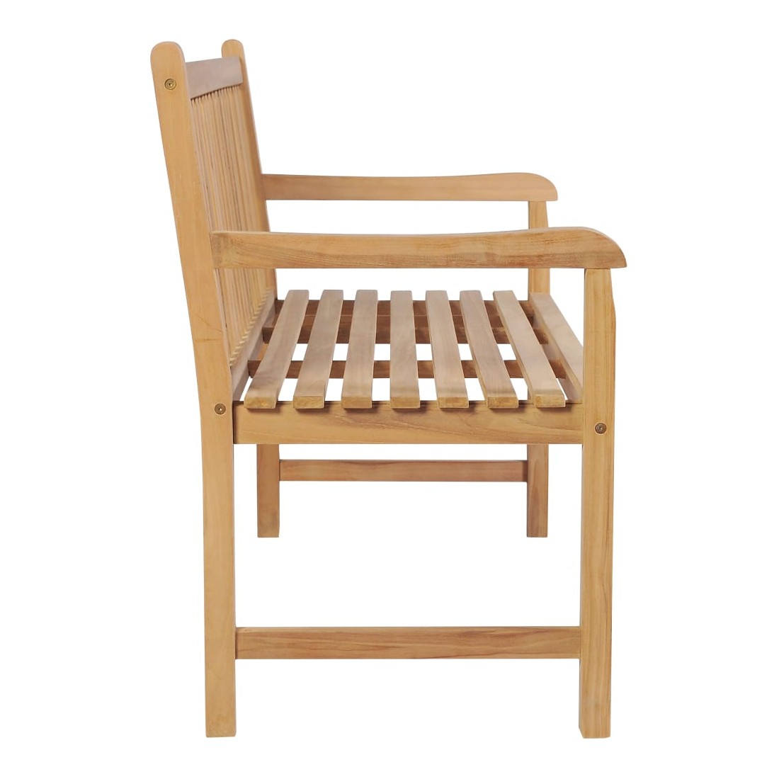Ce banc de jardin en bois, au design élégant et pratique, permet à votre espace de vie extérieur de passer au niveau supérieur ! Fabriquée en bois dur de teck extrêmement durable, cette pièce de meuble en teck a été chevronnée, séchée au four puis finement poncée pour lui donner un aspect très lisse. Le bois de teck est connu pour sa résistance exceptionnelle aux intempéries, ce qui le rend bien plus adapté aux meubles de jardin que tout autre type de bois. Le bois de teck est le choix idéal si vous souhaitez acheter une pièce de meubles de jardin durable. Ce banc d'extérieur présente une belle finition pour donner au bois une couleur chaude. Il présente également un look raffiné qui peut se fondre instantanément dans n'importe quel décor de jardin ou de patio. C'est également le choix