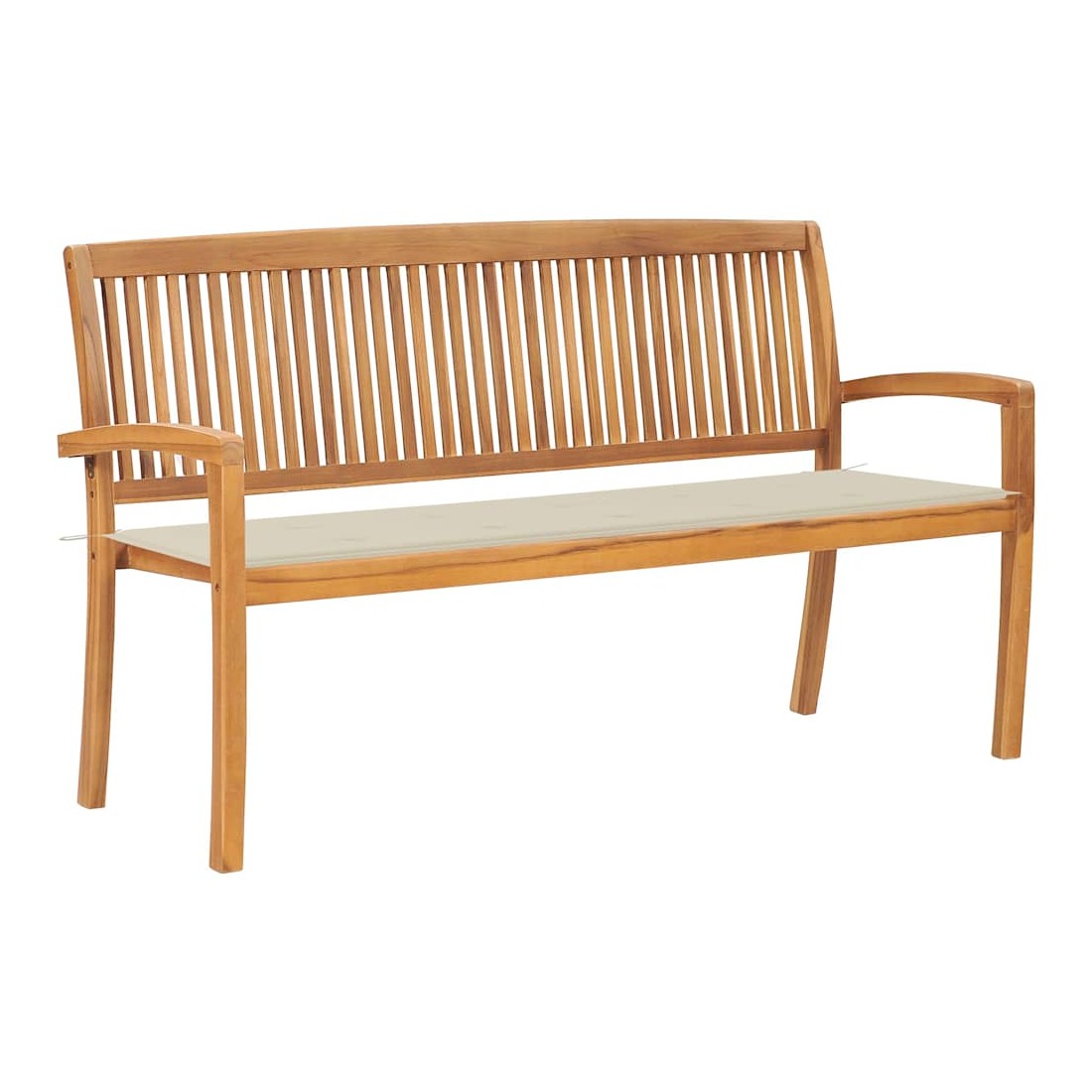 Ce banc de jardin classique en bois est parfait pour une utilisation à l'extérieur et est conçu pour être le point central de votre jardin, terrasse ou patio, etc. Fabriquée en bois dur de teck extrêmement durable, cette pièce de meuble en teck a été chevronnée, séchée au four puis finement poncée pour lui donner un aspect très lisse. Le bois de teck est connu pour sa résistance exceptionnelle aux intempéries, ce qui le rend bien plus adapté aux meubles de jardin que tout autre type de bois. Le bois de teck est le choix idéal si vous souhaitez acheter une pièce de meubles de jardin durable. Ce banc d'extérieur peut être empilé pour économiser de l’espace lorsqu'il n’est pas utilisé. Le coussin inclus est plus qu’un supplément pratique; il a également une fonction décorative. Remarque : afin de prolonger la durée de vie des meubles d'extérieur, nous vous recommandons de les protéger avec une housse imperméable.
