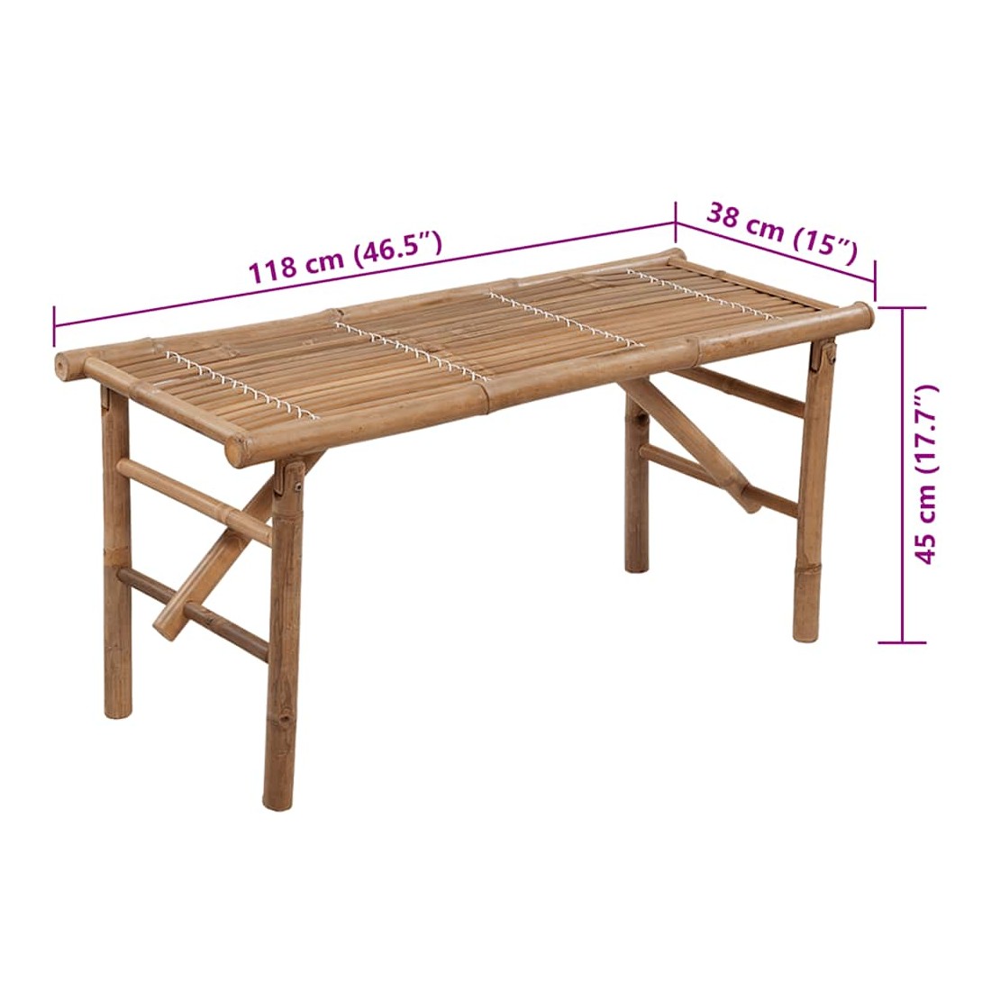 • Dimensions du banc (non plié) : 118 x 38 x 45 cm (L x l x H)