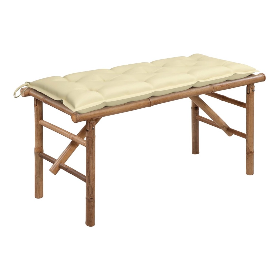 Ce banc classique en bambou sera un excellent supplément à votre jardin ou à tout autre espace extérieur. Le banc d'extérieur est pliable, donc portable, et peut être facilement rangé ou mis en place. Fabriqué en bambou résistant aux intempéries et imperméable, le banc de jardin est durable et stable. Il est également facile à nettoyer avec un chiffon humide. De plus, le coussin inclus offre un confort supplémentaire tout en vous prélassant. Il est fabriqué en 100 % polyester qui a été traité pour le rendre imperméable. Chaque coussin est doté de deux jeux de cordes pour le fixer solidement sur le banc. Remarque : afin de prolonger la durée de vie des meubles d'extérieur, nous vous recommandons de les protéger avec une housse imperméable.