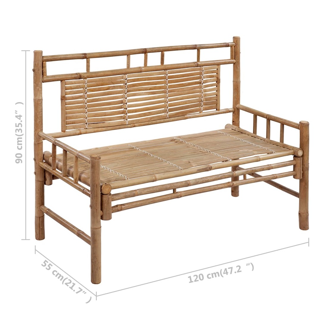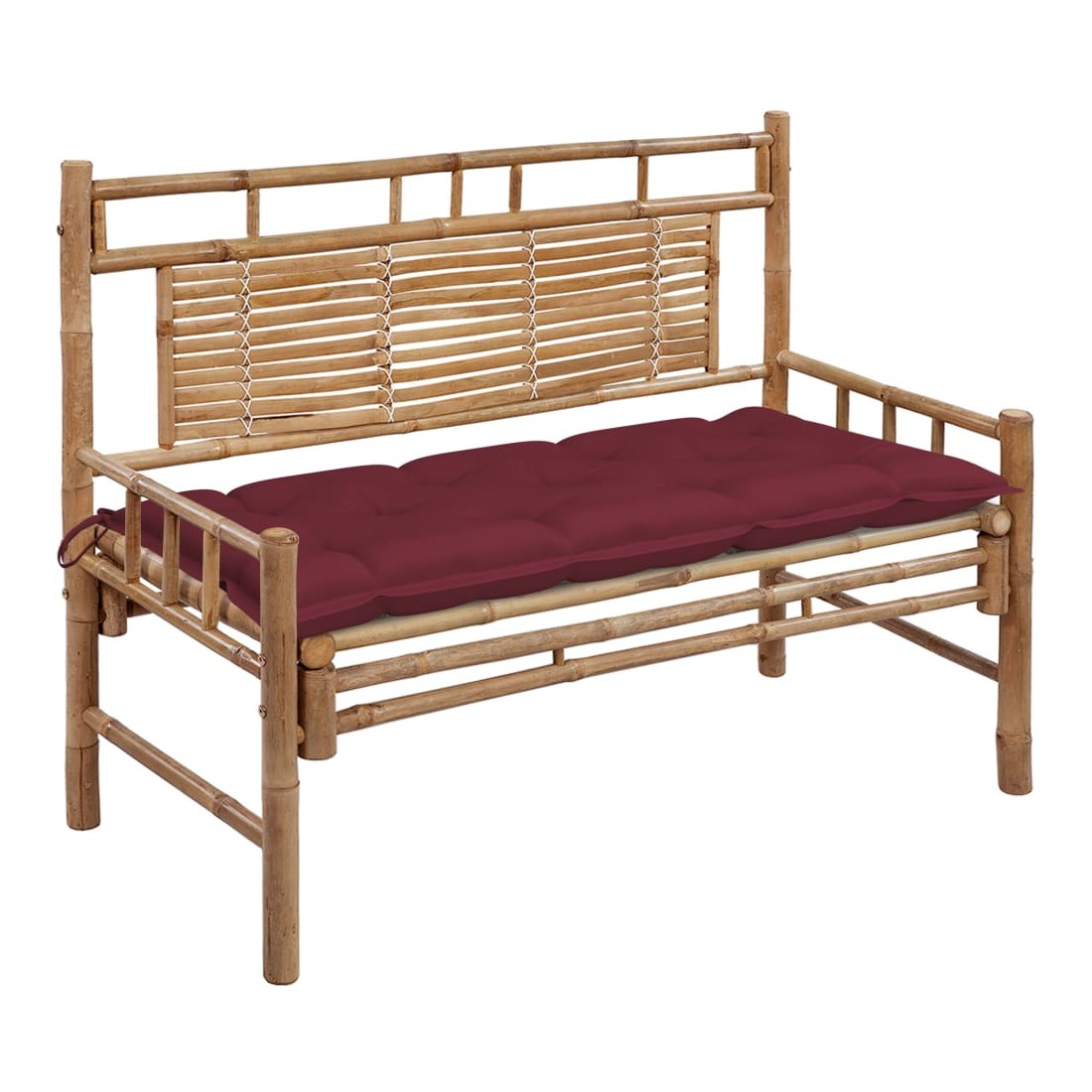 Ce banc classique en bambou sera un excellent supplément à votre jardin ou à tout autre espace extérieur. Le banc d'extérieur est conçu avec un dossier, ce qui est confortable pour vous asseoir tout en lisant ou en vous reposant. Fabriqué en bambou résistant aux intempéries et à l'eau, le banc de jardin est durable et stable. Il est également facile à nettoyer avec un chiffon humide. De plus, le coussin inclus offre du confort supplémentaire lors de votre temps de détente. Il est composé à 100 % de polyester qui a été traité pour le rendre imperméable. Chaque coussin a deux jeux de cordes pour le fixer fermement sur le banc. Remarque : afin de prolonger la durée de vie des meubles d'extérieur, nous vous recommandons de les protéger avec une housse imperméable.