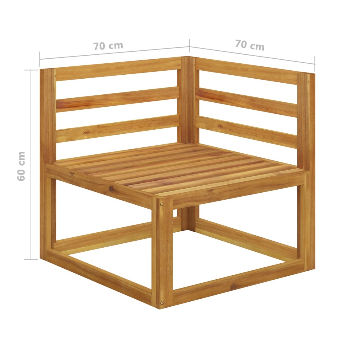 - Dimensions de chaque canapé d'angle : 70 x 70 x 60 cm (l x P x H)