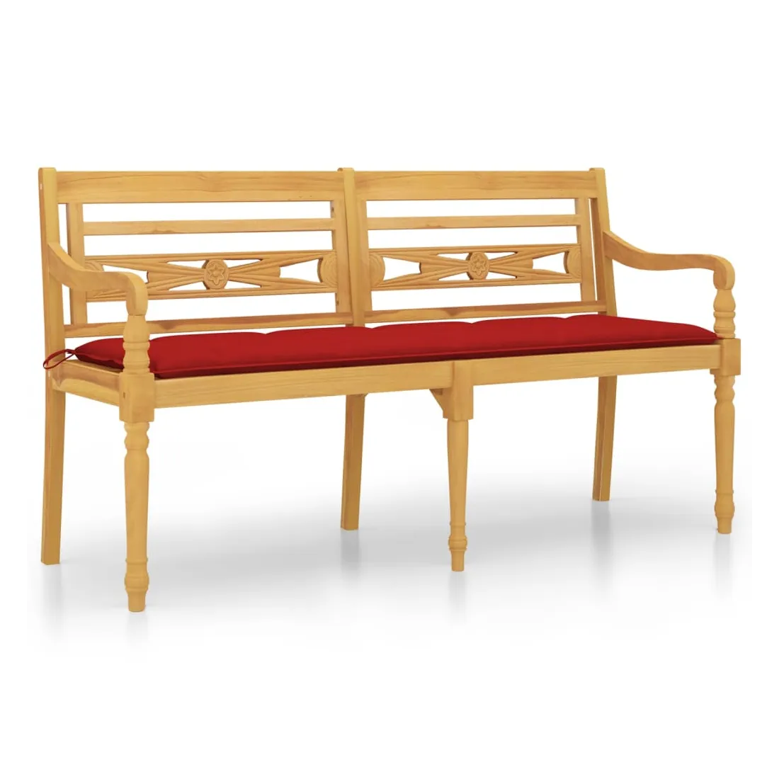 Ajoutez une touche d'élégance à votre espace de vie extérieur avec ce banc Batavia en bois avec un coussin ! Bois de teck naturel : le bois de teck massif est un matériau naturel magnifique. Il a été chevronné, séché au four, puis sablé finement pour lui donner une apparence très lisse. Le bois de teck est connu pour sa résistance exceptionnelle et sa résistance aux intempéries.Tissu pratique : le tissu présente un aspect simple et épuré, et il est respirant et durable.Expérience d'assise confortable : le banc comprend des accoudoirs et un dossier, avec le coussin inclus, offrant une expérience d'assise confortable.Design élégant : le siège magnifiquement sculpté ajoutera une touche de charme rustique à votre jardin et convient parfaitement pour vous détendre à l'extérieur avec vos amis et votre famille. Remarque :Chaque produit est livré avec un manuel de montage dans la boîte pour un montage facile.Afin de prolonger la durée de vie de votre mobilier d'extérieur, nous vous recommandons de le protéger avec une housse imperméable.