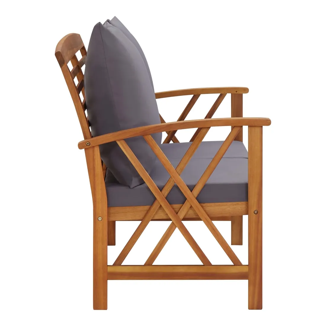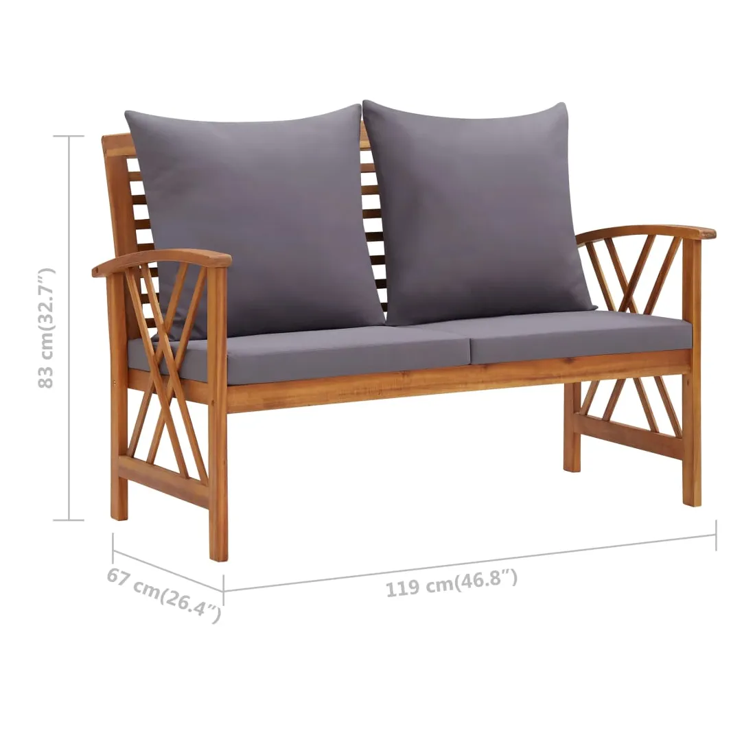 Ce banc de jardin simple avec coussins est parfait pour profiter du beau temps et vous détendre dans votre jardin ou sur le patio. Ce banc d'extérieur est fait de bois d’acacia massif, un bois dur avec des grains denses. Ce banc au design magnifique est stable, durable et attire l'attention. La surface à finition à l'huile est facile à nettoyer avec un chiffon humide et convient à une utilisation dehors. Les coussins de siège et les oreillers de dossier fournis offrent un confort optimal. Le banc en bois en fait un endroit idéal pour vous détendre, discuter avec les membres de votre famille dans votre jardin, sur le patio ou le balcon.