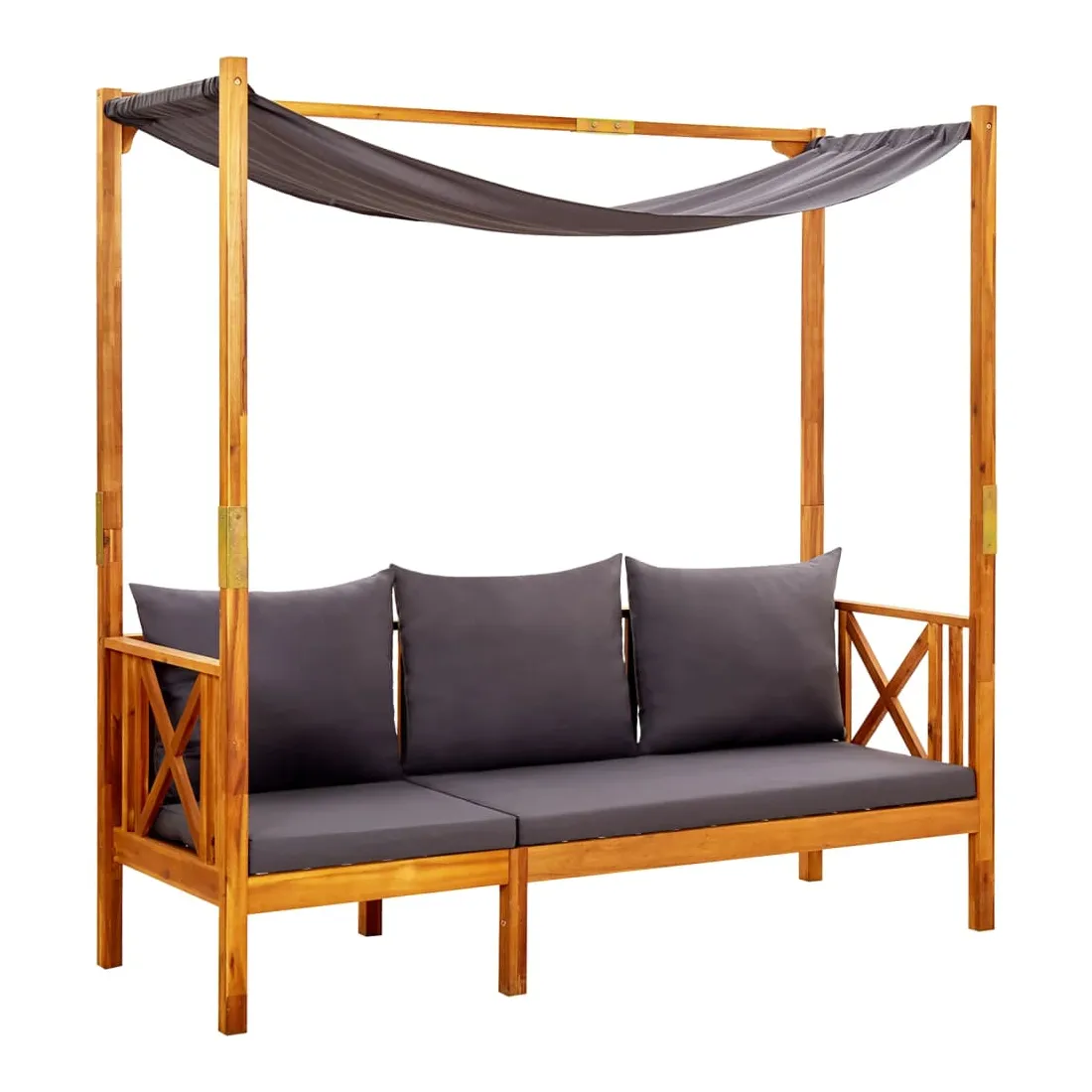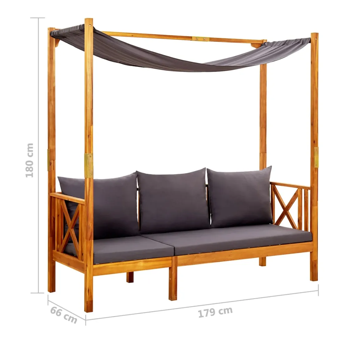 Chaque fois que vous avez envie de passer un moment de détente sur la terrasse ou dans le jardin, ce banc en bois avec auvent est une retraite parfaite ! Le lit de jour d'extérieur est fabriqué en bois d'acacia massif, ce qui le rend durable et facile à nettoyer avec un chiffon humide. Avec des coussins bien rembourrés, la chaise longue vous apporte une expérience confortable. De plus, elle sert également d'abri contre le soleil. Remarque : afin de prolonger la durée de vie des meubles d'extérieur, nous vous recommandons de les protéger avec une housse imperméable.