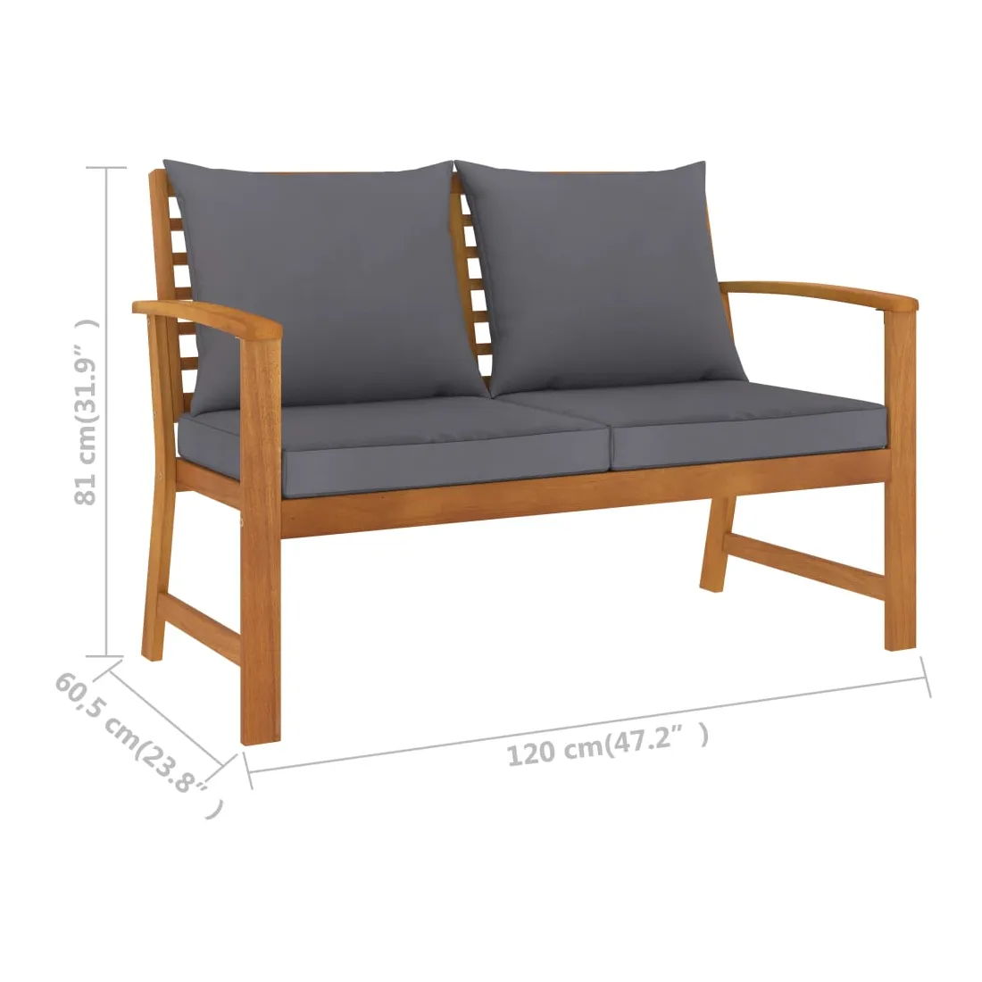 Cet élégant banc de jardin en bois ajoutera une touche de charme rustique à votre patio ou à tout autre espace de vie extérieur ! Matériau durable : le banc est fabriqué en bois d’acacia massif de haute qualité, un bois dur tropical, qui est résistant aux intempéries et très durable. Facile à nettoyer et à entretenir : grâce à la finition à l’huile, l’ensemble de meubles de patio a une couleur chaude et est facile à nettoyer et à entretenir. Expérience d’assise confortable : la livraison comprend des coussins de siège et de dossier avec rembourrage épais pour un confort ultime.
