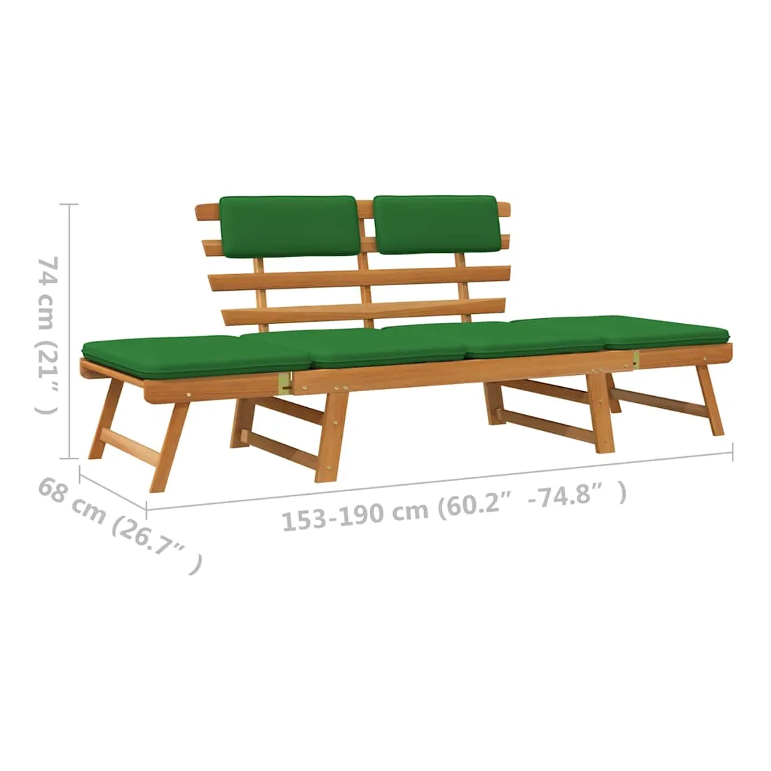 Banc de jardin avec coussins 2-en-1 190 cm Bois solide d'acacia
