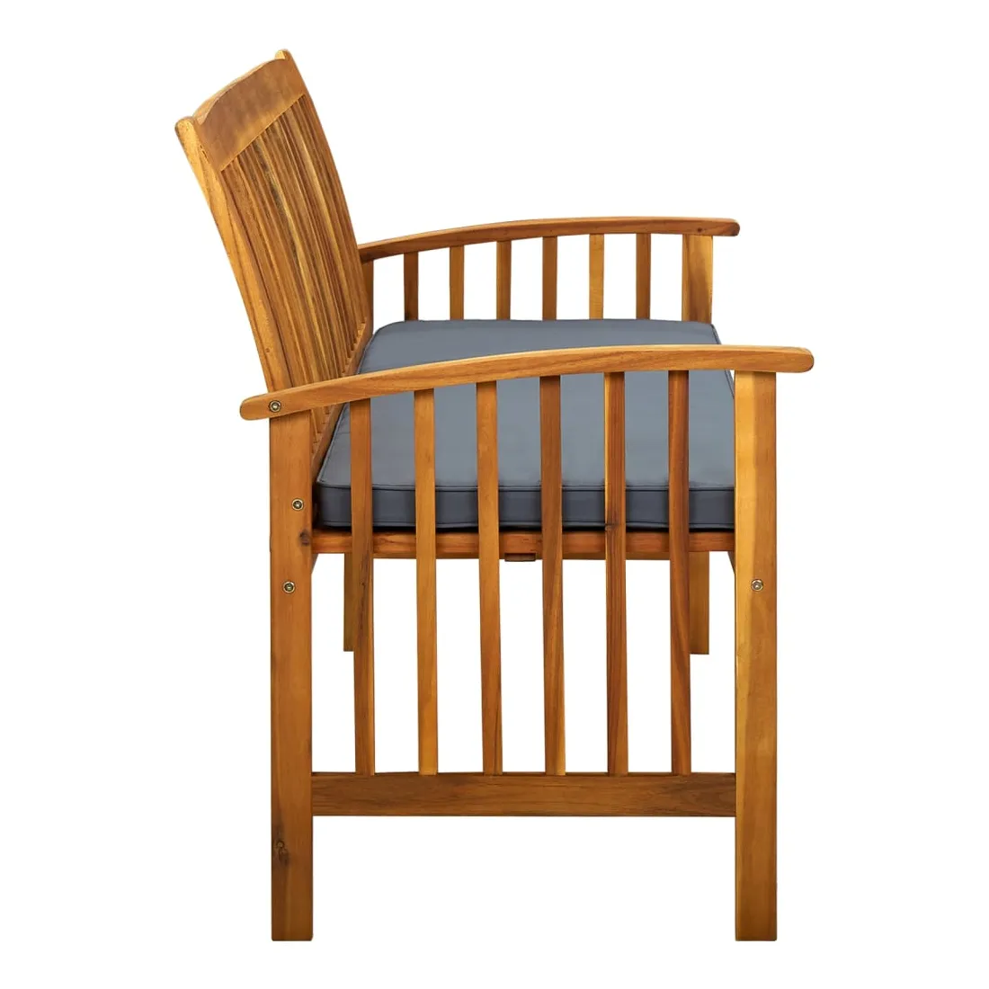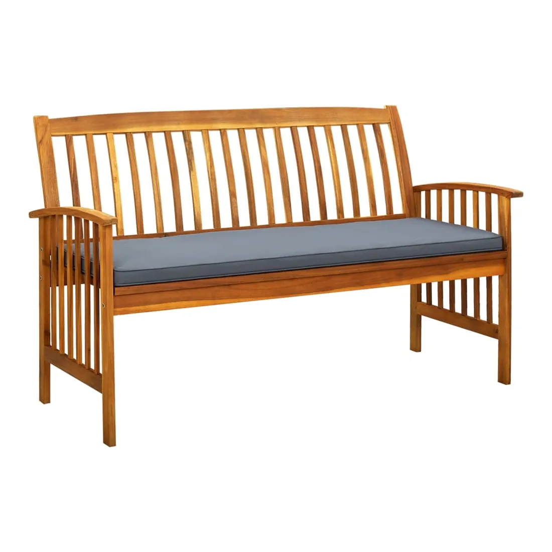 Cet élégant banc de jardin ajoutera une touche de charme rustique à votre patio ou à tout autre espace de vie extérieur ! Le banc avec accoudoirs est fabriqué en bois d’acacia massif, un bois dur tropical, qui est résistant aux intempéries et très durable. Grâce à la finition à l'huile, le siège de patio a une couleur chaude et est facile à nettoyer et à entretenir. De plus, le coussin inclus avec un rembourrage épais offre un confort ultime. Remarque : afin de prolonger la durée de vie des meubles d'extérieur, nous vous recommandons de les protéger avec une housse imperméable.