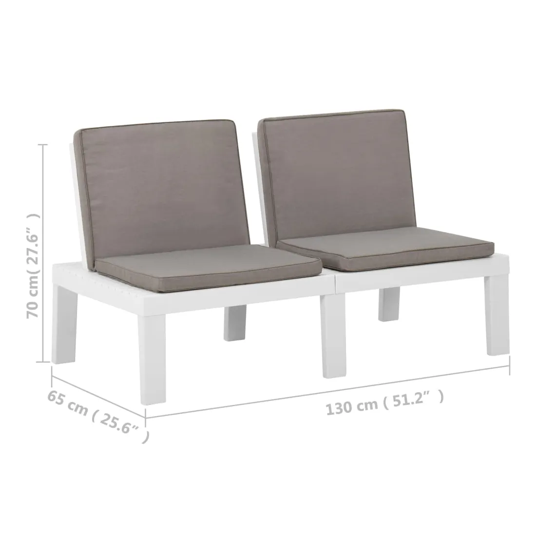 Ce banc de salon de jardin confortable est un excellent choix pour discuter avec la famille et les amis ou tout simplement profiter du soleil apaisant dans votre espace de vie extérieur. Le banc, fabriqué en plastique, est robuste et facile à nettoyer. Les coussins bien rembourrés ajoutent du confort supplémentaire lors de votre temps de détente. La housse de coussin est équipée d’une fermeture éclair, amovible et lavable. De plus, ce banc d'extérieur est facile à déplacer grâce à sa construction légère.