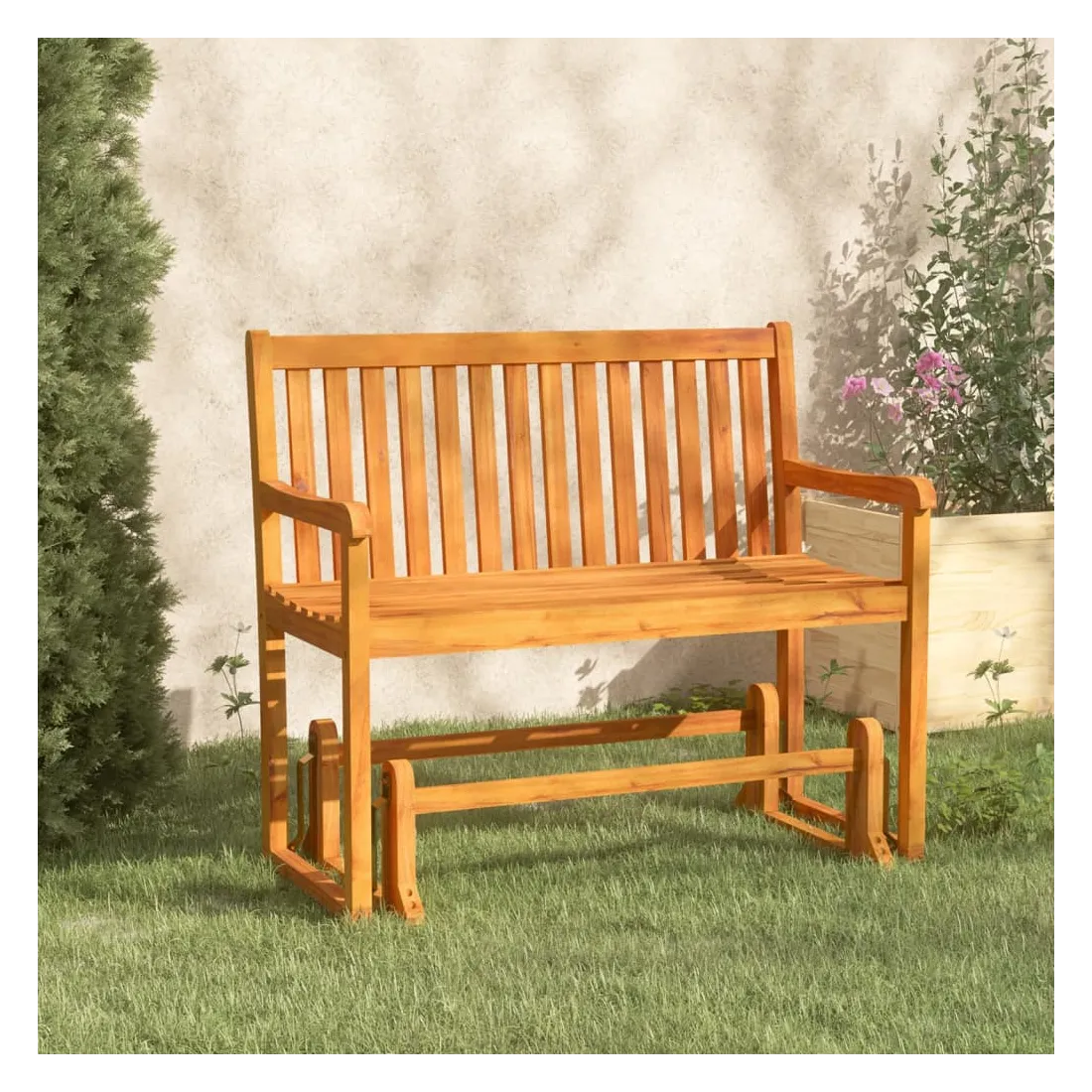 Cette balancelle en bois classique est un supplément intemporel à votre jardin, terrasse et patio. La balancelle est fabriquée en bois d'acacia massif, un bois dur tropical, avec une finition à l'huile, qui est résistant aux intempéries, très durable et adapté à une utilisation en plein air. Ce banc distinctif vous permet de basculer d'avant en arrière, grâce à son mécanisme à bascule. C'est relaxant et merveilleux de se balancer doucement sur le banc avec votre ami ou votre bien-aimé. Remarque : afin de prolonger la durée de vie des meubles d'extérieur, nous vous recommandons de les protéger avec une housse imperméable.