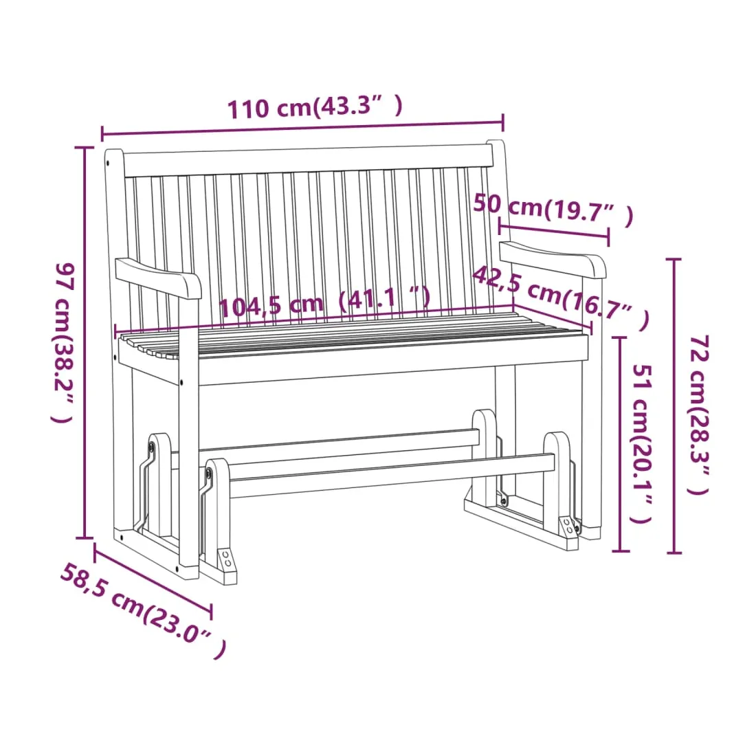 - Dimensions : 110 x 58,5 x 97 cm (l x P x H)