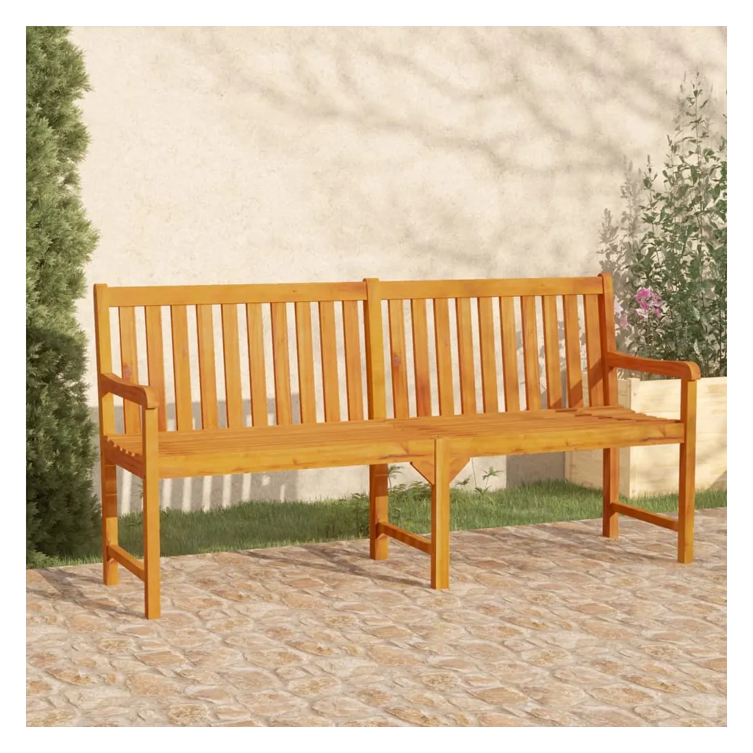 Le banc d'extérieur classique, en bois d'acacia massif, est résistant aux intempéries, très durable et adapté à une utilisation en plein air. La surface finie à l'huile rend le banc facile à nettoyer avec un chiffon humide. Les accoudoirs et le dossier offrent un excellent soutien et ajoutent également au confort d'assise du banc. Remarque importante : les couleurs et les grains varient d'une pièce à l'autre, rendant chaque pièce unique. La livraison est aléatoire, ce qui garantit l'exclusivité et l'individualité de votre produit. Remarque : afin de prolonger la durée de vie des meubles d'extérieur, nous vous recommandons de les protéger avec une housse imperméable.