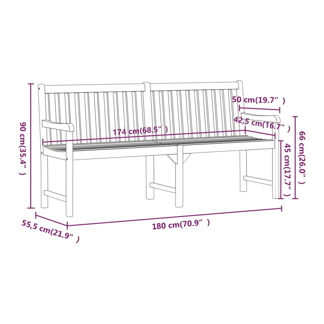 - Dimensions : 180 x 55,5 x 90 cm (l x P x H)