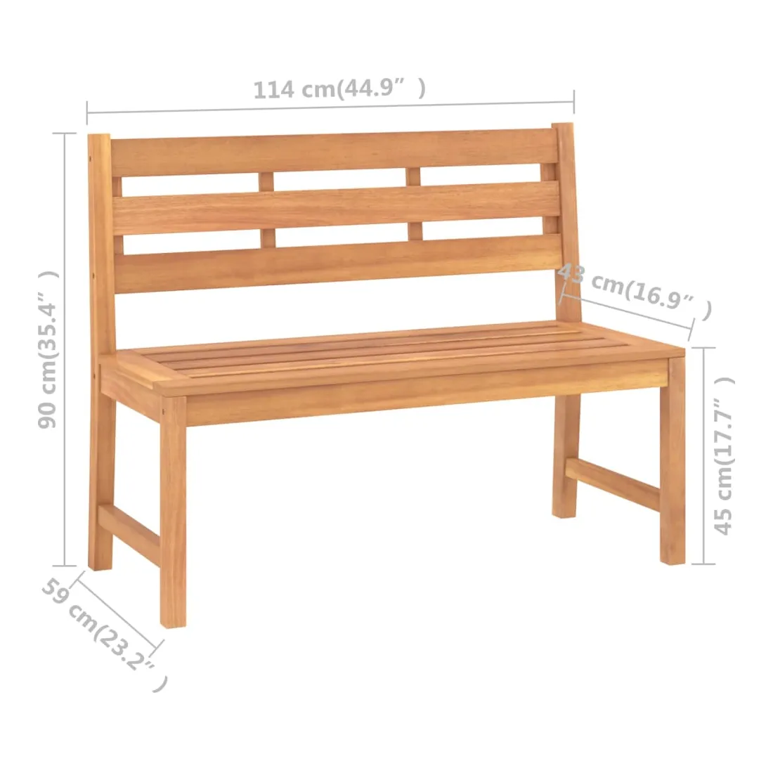 Avec un design élégant mais pratique, ce banc de jardin sublimera votre espace de vie extérieur ! Fabriquée en bois dur de teck extrêmement durable, cette pièce de meuble en teck a été chevronnée, séchée au four puis finement poncée pour lui donner un aspect très lisse. Le bois de teck est connu pour sa résistance exceptionnelle aux intempéries, ce qui le rend bien plus adapté aux meubles de jardin que tout autre type de bois. Le bois de teck est le choix idéal si vous souhaitez acheter un meuble de jardin durable. Le banc d'extérieur est appliqué avec une belle finition pour donner au bois une couleur chaude. Il présente un look raffiné qui peut se fondre instantanément dans n’importe quel décor de jardin ou de patio. Remarque : afin de prolonger la durée de vie des meubles d'extérieur, nous vous recommandons de les protéger avec une housse imperméable.