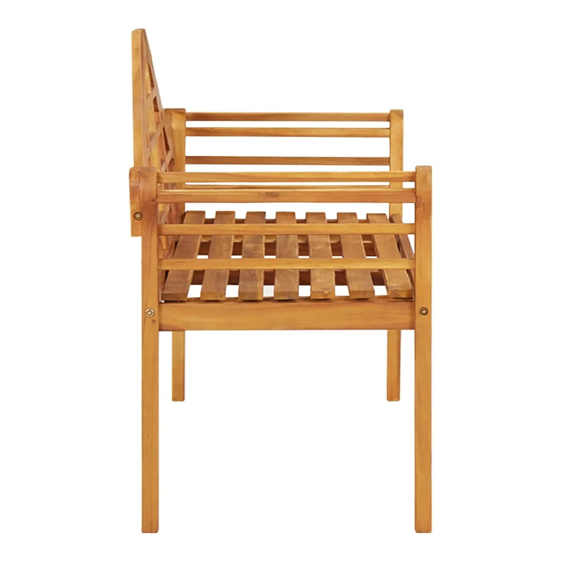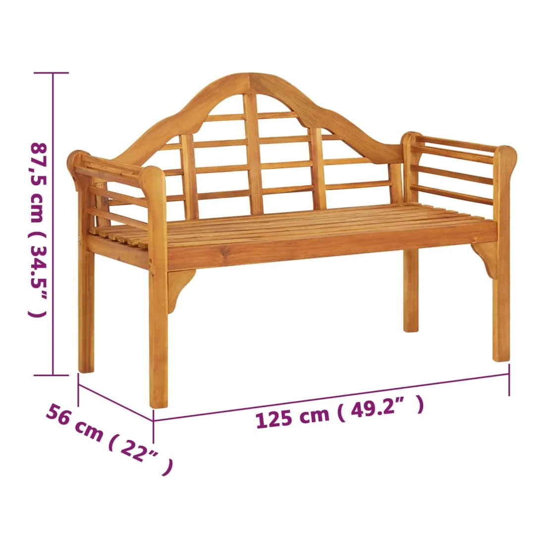 Ce banc de jardin en bois est un choix parfait pour vous détendre et profiter de votre temps libre avec vos amis ou votre famille dans votre espace de vie de patio. Matériau haut de gamme : le bois d'acacia massif est un beau matériau naturel, un bois dur à grains denses, robuste et durable.Design rustique : le grand banc au charme rustique sera un excellent supplément à votre patio extérieur.Sièges confortables : le banc d'extérieur dispose d'un dossier et d'accoudoirs pour un soutien supplémentaire tout en vous prélassant. Remarque :Afin de prolonger la durée de vie de votre mobilier d'extérieur, nous vous recommandons de le protéger avec une housse imperméable.