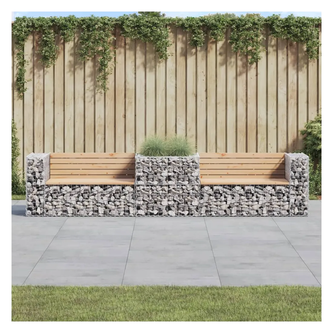 Ce banc de jardin avec panier en gabion seront un véritable accroche-regard dans votre espace de vie extérieur. Pin massif : le dessus du siège de jardin est en pin massif pour plus de durabilité. Le bois de pin massif est un beau matériau naturel. Son grain est droit et les nœuds confèrent au matériau son aspect rustique caractéristique.Base robuste et stable : le banc d'extérieur est doté d'une base en gabion en acier galvanisé conçue pour être remplie de roches et de graviers pour plus de beauté. La grille maillée du panier de gabion est soudée avec des fils transversaux et longitudinaux à chaque intersection pour une stabilité supplémentaire.Design compact : le banc de jardin est parfait pour un espace limité grâce à son design étroit et compact.Large éventail d'utilisations : le banc de parc convient aux jardins, arrière-cours, terrasses, coins secrets et à bien d'autres endroits. Bon à savoir :Ce produit est assemblé par 2 bancs de jardin et un panier en gabion.