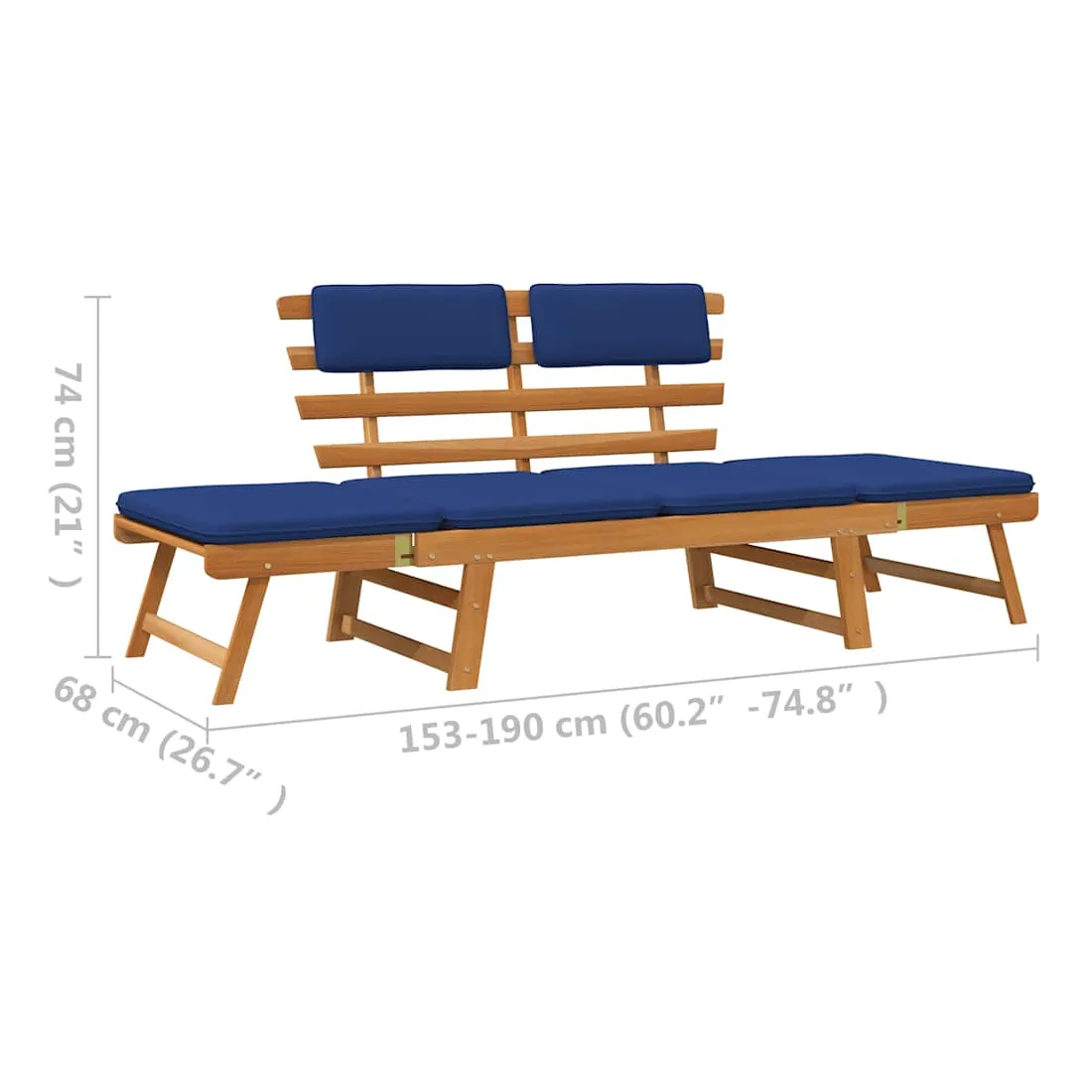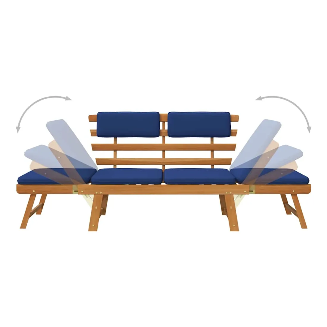 Ce lit de bronzage / banc de jardin d'extérieur en bois combine le style et la fonctionnalité et va devenir le point central de votre jardin ou terrasse. La chaise longue peut être transformée d'un banc en un lit de repos et vice-versa facilement et rapidement grâce aux côtés réglables. Les coussins de dossier et de siège épais et amovibles offrent un confort d'assise et de couchage. Les housses des coussins peuvent être facilement enlevées et lavées. Ce banc est fabriqué en bois d’acacia solide, un bois dur avec des grains denses, qui résiste aux intempéries et est adapté pour une utilisation à l'extérieur.