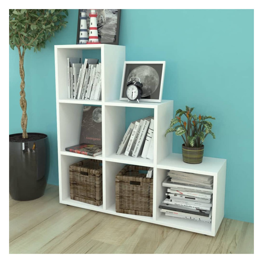 Cette bibliothèque, avec sa structure unique inspirée par un escalier fonctionnel, deviendra le point central de toute pièce. Cette bibliothèque étonnante comporte 6 compartiments ouverts qui constituent l'endroit idéal pour exposer des objets tels que des livres, des objets de collection, des photos, des récompenses, des plantes en pot, etc. Composée de matériaux de haute qualité , la bibliothèque est très solide et durable. La livraison comprend également des accessoires d'assemblage. L'assemblage est très facile.