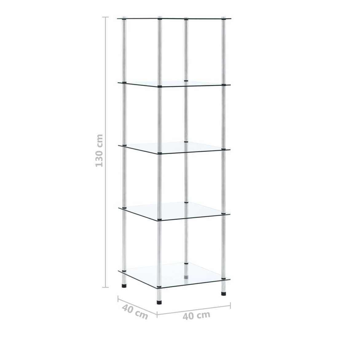 Ajoutez instantanément une touche de style à votre espace de vie avec notre étagère en verre contemporaine et pratique ! La vitrine est conçue avec cinq niveaux pour un grand espace de rangement. Vous pouvez utiliser l'étagère polyvalente dans le salon ou le bureau pour exposer vos objets de collection, cadres photo, plantes en pot ou dans la salle de bain pour garder vos articles essentiels organisés. Faite de verre trempé épais et d’acier inoxydable durable, cette étagère est extrêmement robuste et sûre. De plus, la surface lisse est facile à nettoyer avec un chiffon humide. Notre étagère est facile à assembler.