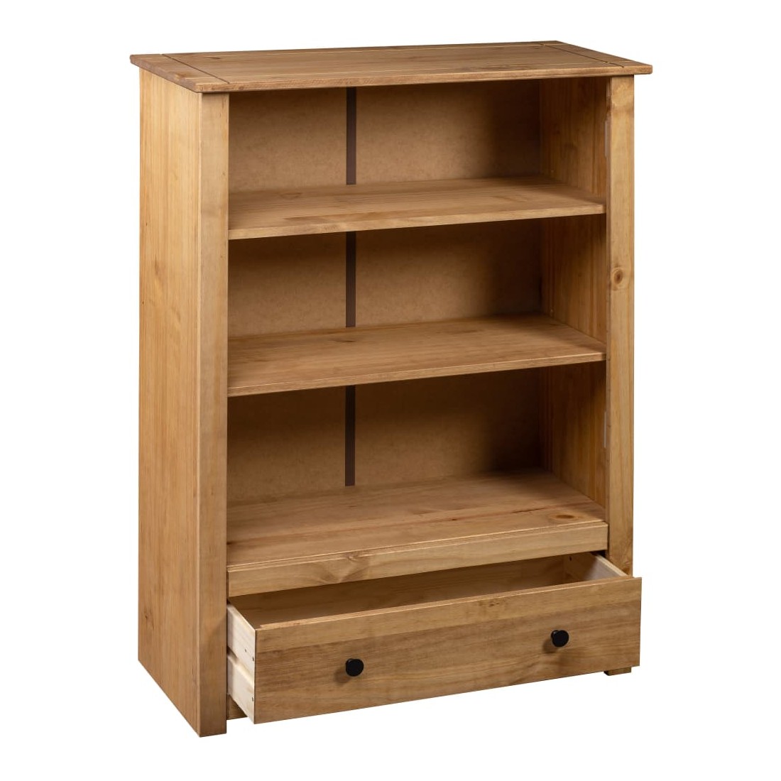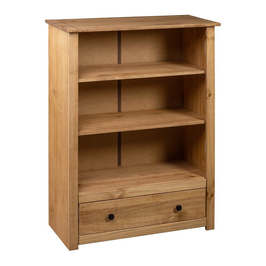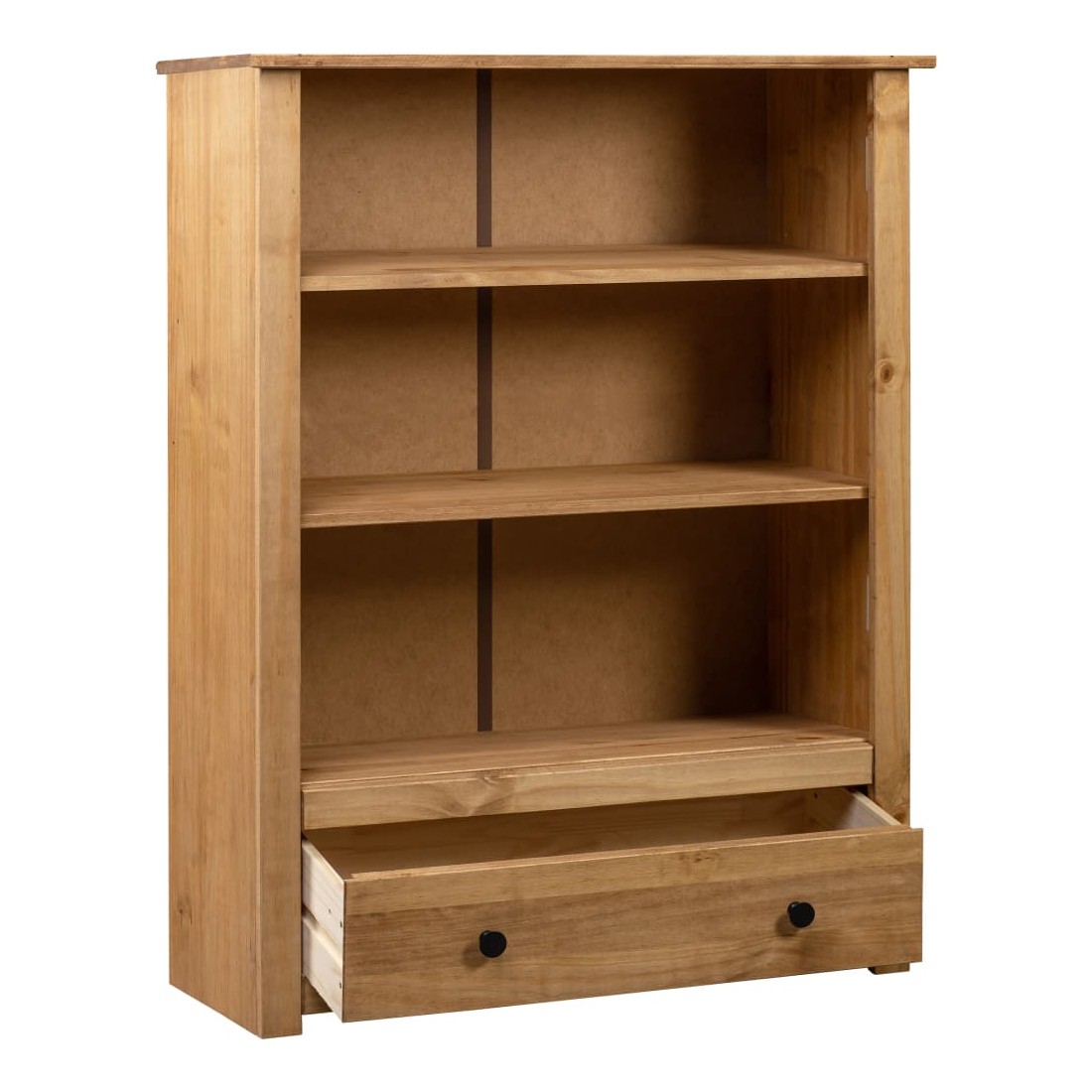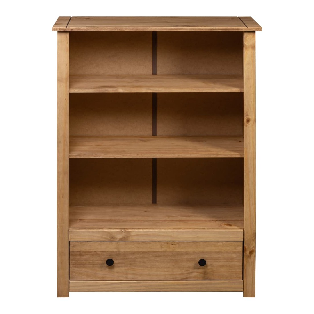 Notre bibliothèque dégage une touche de charme rustique qui sera un excellent supplément à la décoration de votre chambre. La bibliothèque est en bois de pin massif, reconnu pour sa grande solidité. Avec 3 niveaux et un tiroir spacieux, les étagères offrent un grand espace de rangement pour garder vos livres préférés ou autres objets précieux bien rangés. Chaque étape du processus de construction est réalisée avec le plus grand soin, que ce soit le polissage ou le laquage. ATTENTION : afin d'éviter qu'il ne bascule, ce produit doit être utilisé avec le dispositif de fixation murale fourni.