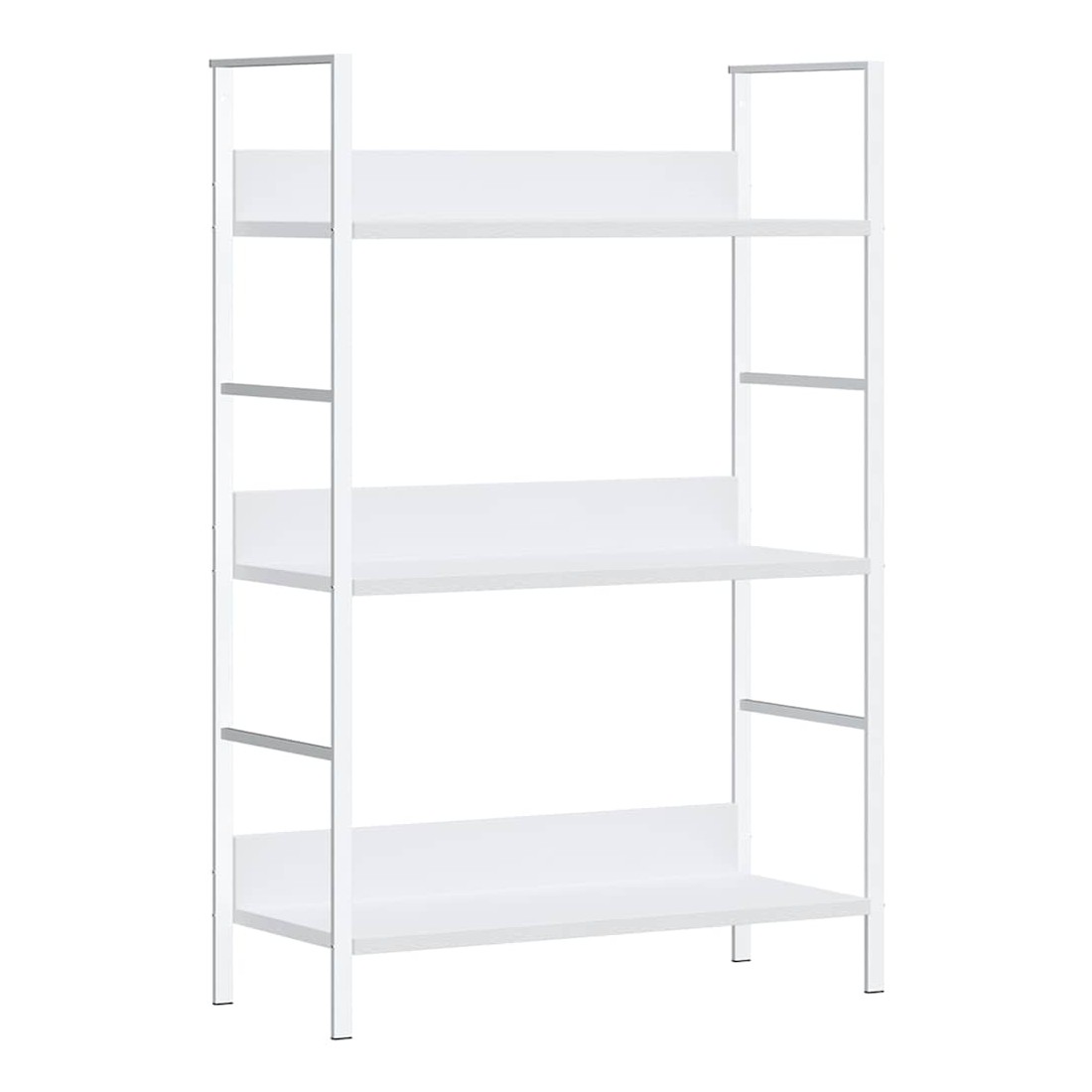 Cette bibliothèque à 3 niveaux peut être utilisée dans le salon comme étagère à livres ou présentoir de décoration, ou sur le patio comme support d'affichage pour plantes, etc. Elle est un supplément intemporel à votre décoration intérieure. L'étagère est en bois d'ingénierie, ce qui la rend facile à nettoyer avec un chiffon humide. La structure en acier robuste la rend antirouille et ajoute à son style industriel. Le support de rangement présente un design compact, ce qui en fait l'utilisation la plus importante de l'espace limité. Ce meuble a 3 niveaux, ce qui vous offre amplement d'espace pour stocker et afficher votre collection de livres, fleurs, CD, DVD ainsi que d'autres objets décoratifs. Notre étagère debout est facile à assembler.