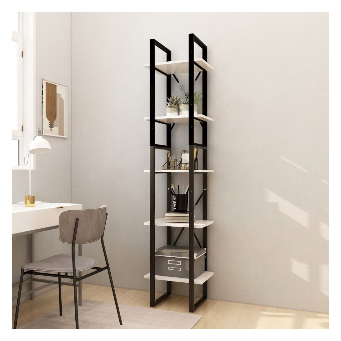 Cette bibliothèque en bois peut être parfaitement intégrée à votre décoration intérieure actuelle et ajoute une touche de modernité et un aspect industriel. L'étagère à livres est fabriquée en bois de pin et en métal, assurant sa robustesse, sa durabilité et son service de longue durée. Elle dispose de 5 étagères, offrant un grand espace de rangement pour ranger des livres, des magazines et d'autres objets décoratifs. La bibliothèque est facile à nettoyer avec un chiffon humide. La livraison comprend deux armoires de hauteurs différentes et vous pouvez les combiner pour en obtenir une plus haute.