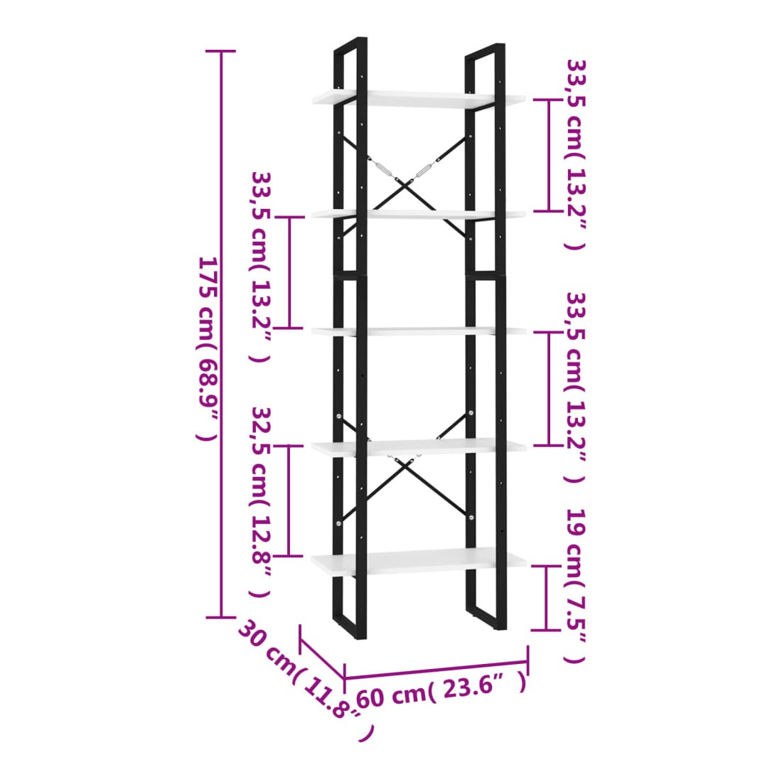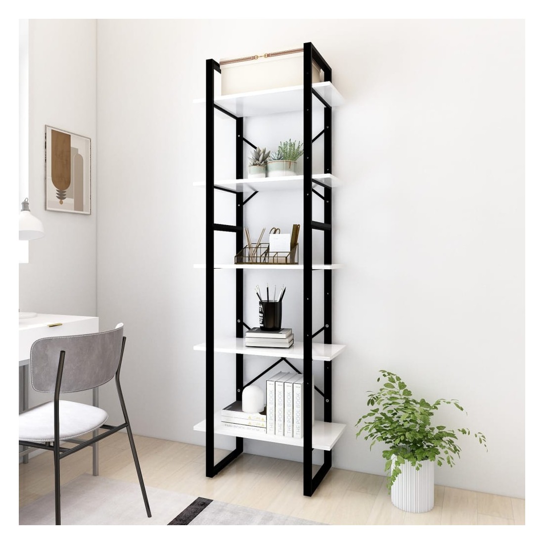 Cette bibliothèque peut être parfaitement intégrée à votre décoration intérieure actuelle et ajoute une touche de modernité et un aspect industriel. L'étagère à livres est fabriquée de bois d'ingénierie de qualité avec un cadre en métal, assurant sa robustesse, sa durabilité et son service de longue durée. Elle dispose de 5 étagères, offrant un grand espace de rangement pour ranger des livres, des magazines et d’autres objets décoratifs. La bibliothèque est facile à nettoyer avec un chiffon humide. La livraison comprend deux armoires de hauteurs différentes et vous pouvez les combiner pour en obtenir une plus haute.