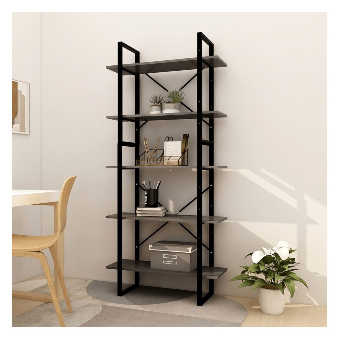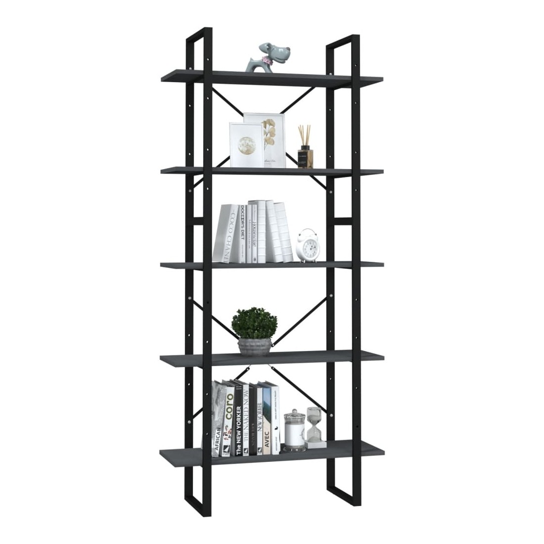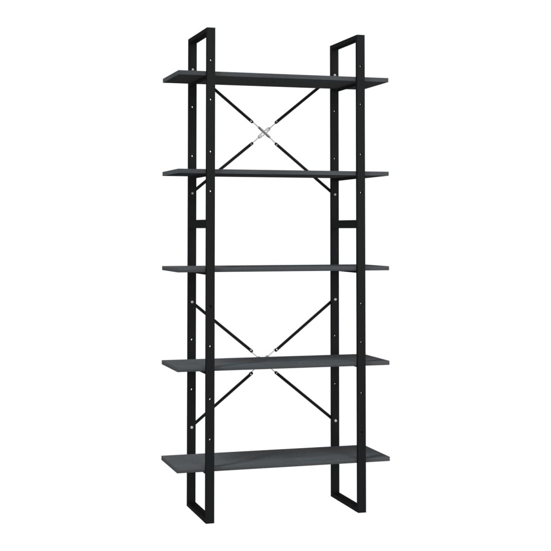 Bibliothèque à 5 niveaux Gris 80x30x175 cm Bois de pin