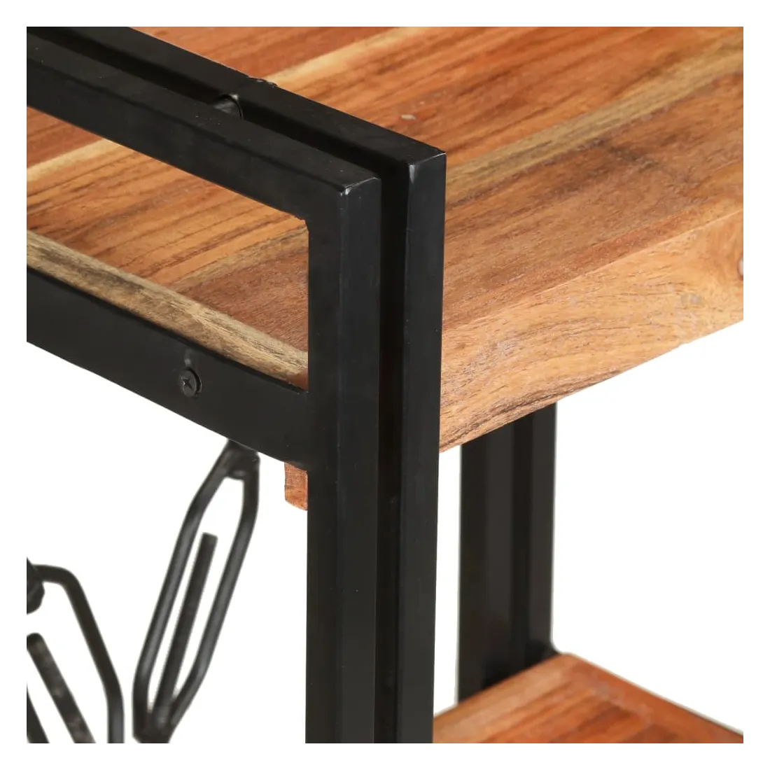 - Matériau : bois d’acacia massif avec une finition naturelle, acier enduit de poudre