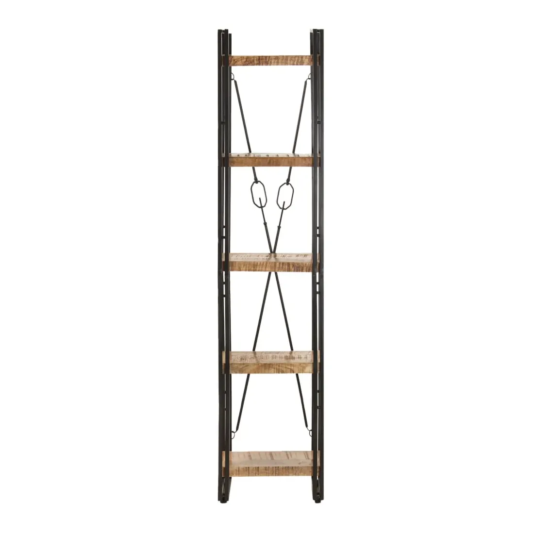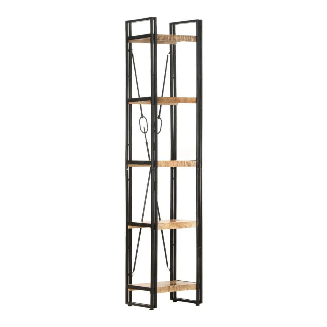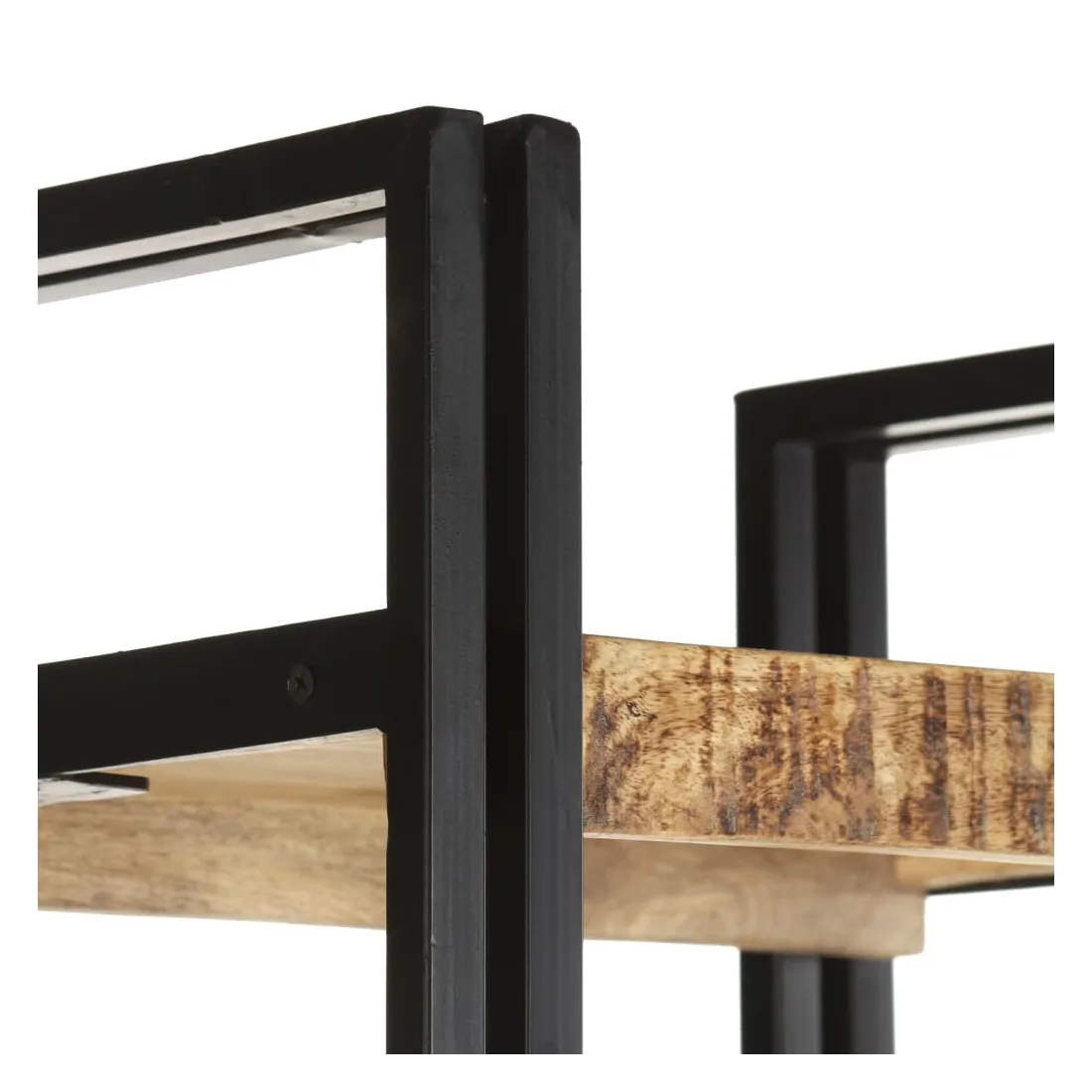 Ajoutez une touche de style industriel à votre maison ou bureau avec cette bibliothèque à 5 niveaux en bois. Cette bibliothèque constitue une solution idéale pour stocker et afficher votre collection de livres, magazines, documents ou objets décoratifs tels que des cadres photo et des objets de collection. La bibliothèque a un cadre robuste en acier enduit de poudre qui lui donne un aspect industriel. Les étagères sont fabriquées en bois de manguier brut et solide, qui est stable, durable et beau, et l'artisanat ajoute à son style rétro spectaculaire. Chaque étape du processus est réalisée avec le plus grand soin, que ce soit le polissage, la peinture ou le laquage. L'artisanat et les beaux grains de bois font de chaque meuble un objet unique et légèrement différent l'un de l'autre. Remarque importante : Les couleurs varient d'un meuble à l'autre, rendant chaque bibliothèque unique. La livraison est aléatoire, ce qui garantit l'exclusivité et l'individualité de votre produit.
