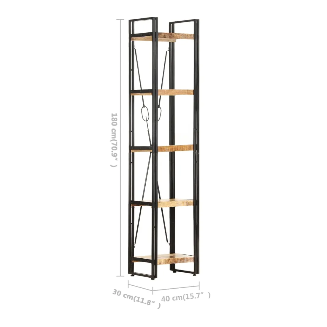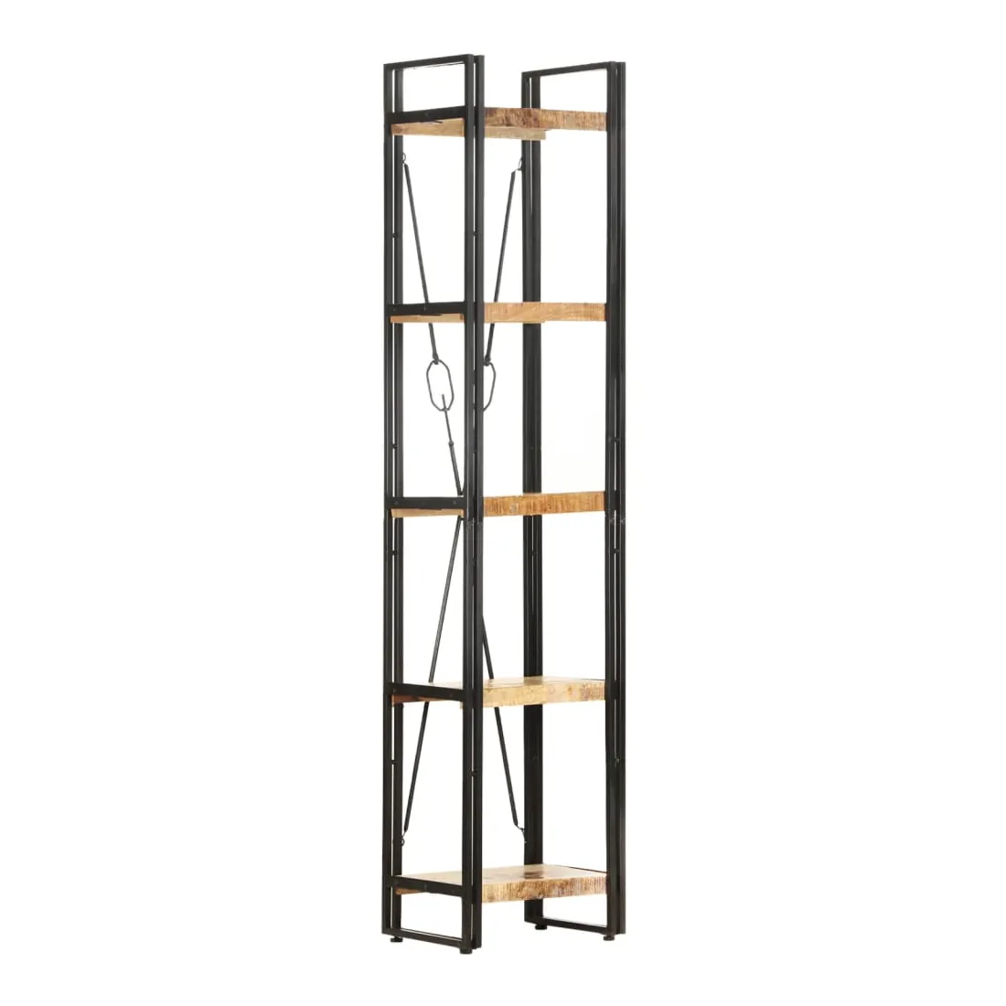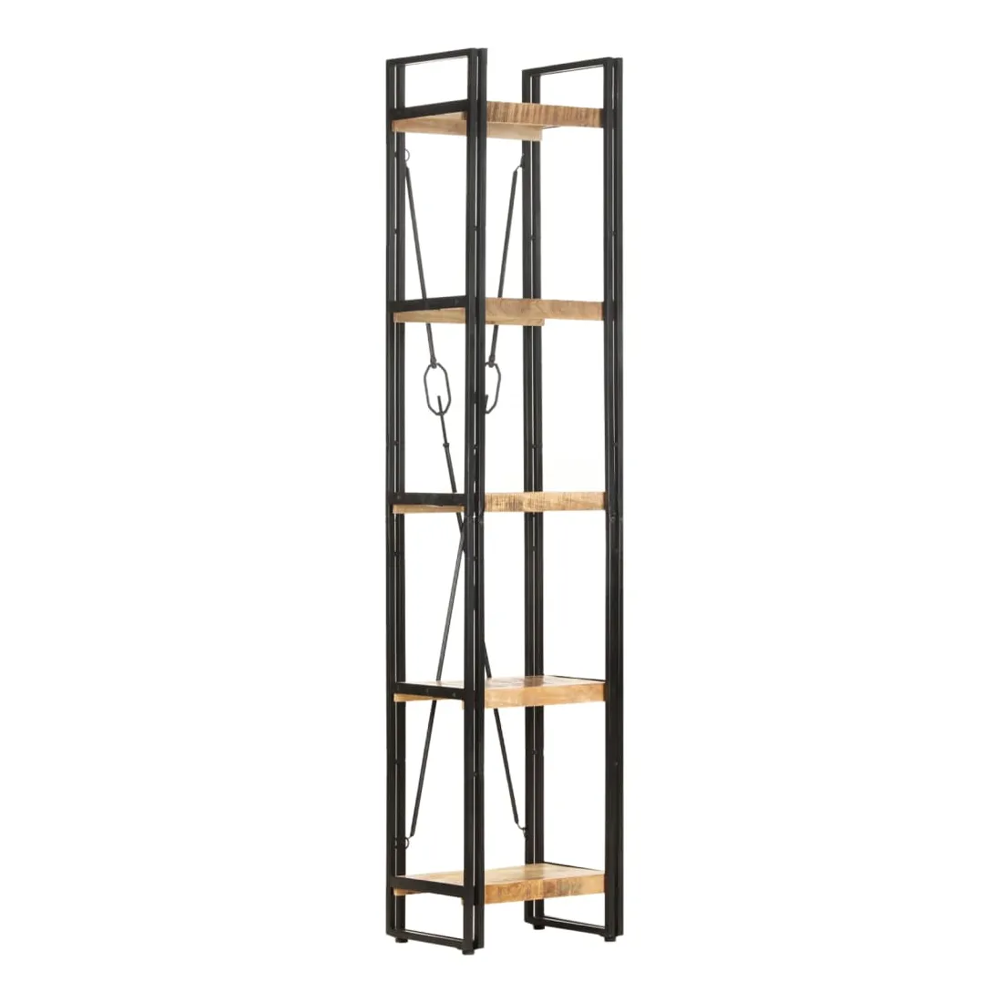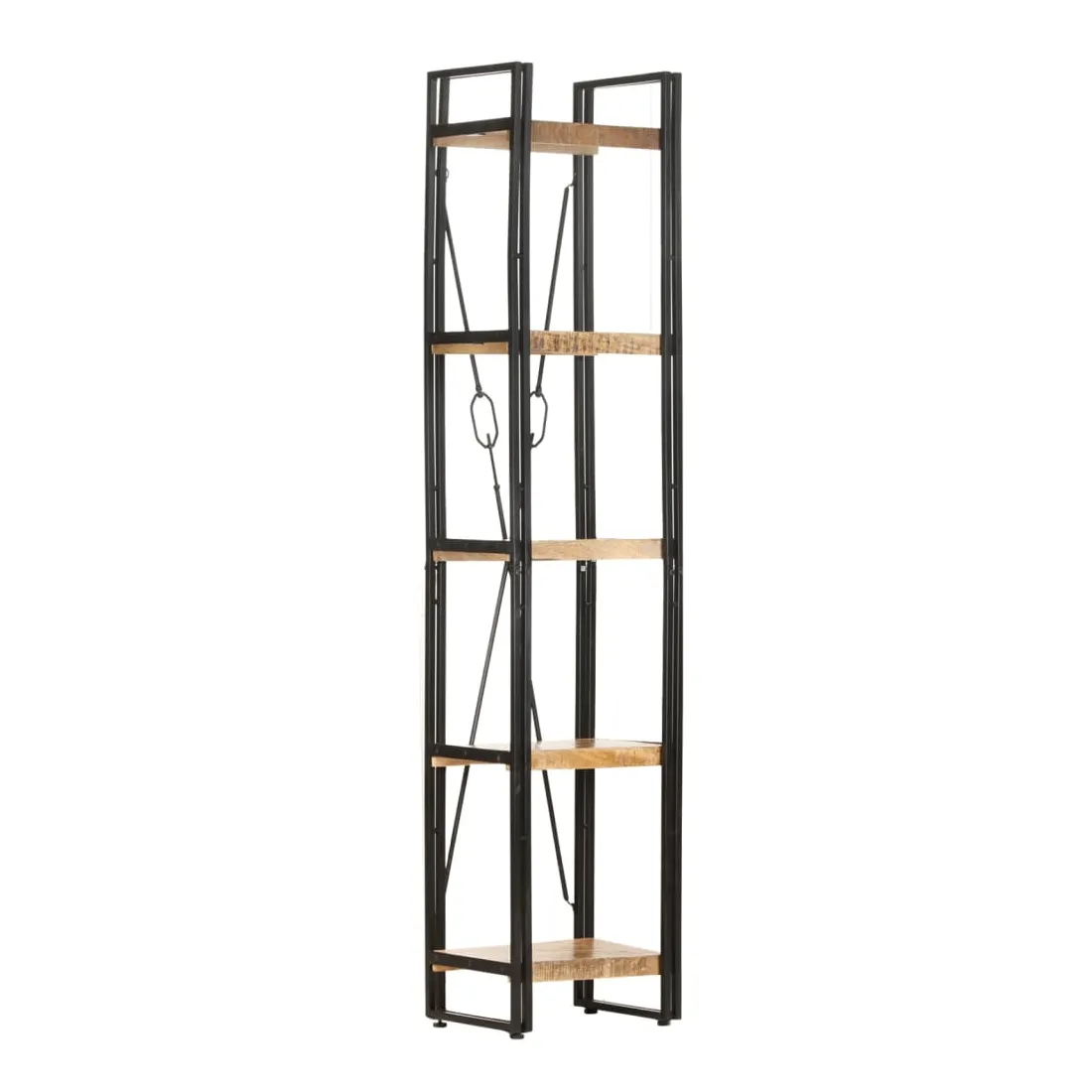 Ajoutez une touche de style industriel à votre maison ou bureau avec cette bibliothèque à 5 niveaux en bois. Cette bibliothèque constitue une solution idéale pour stocker et afficher votre collection de livres, magazines, documents ou objets décoratifs tels que des cadres photo et des objets de collection. La bibliothèque a un cadre robuste en acier enduit de poudre qui lui donne un aspect industriel. Les étagères sont fabriquées en bois de manguier brut et solide, qui est stable, durable et beau, et l'artisanat ajoute à son style rétro spectaculaire. Chaque étape du processus est réalisée avec le plus grand soin, que ce soit le polissage, la peinture ou le laquage. L'artisanat et les beaux grains de bois font de chaque meuble un objet unique et légèrement différent l'un de l'autre. Remarque importante : Les couleurs varient d'un meuble à l'autre, rendant chaque bibliothèque unique. La livraison est aléatoire, ce qui garantit l'exclusivité et l'individualité de votre produit.