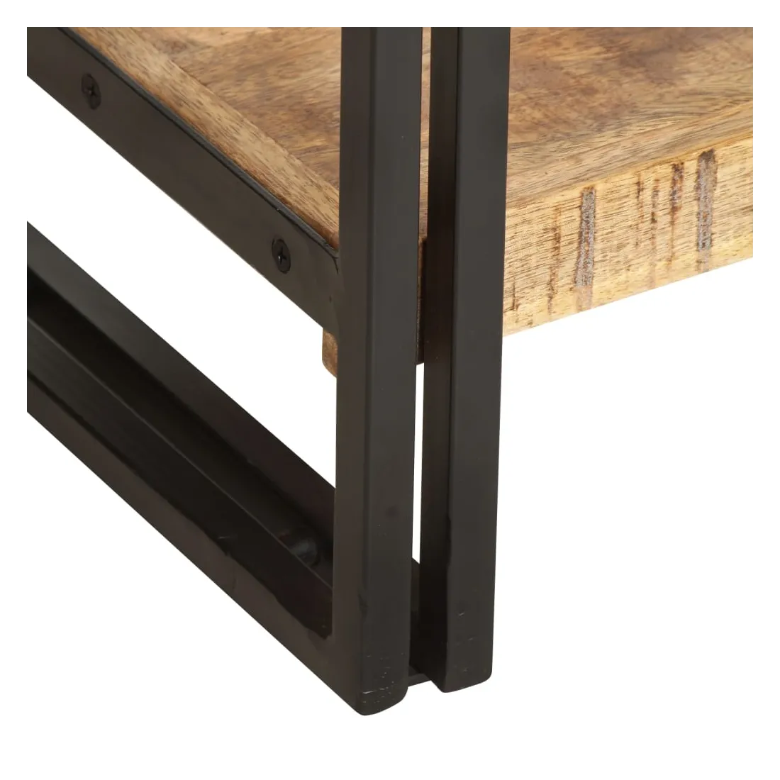 - Matériau : bois de manguier brut solide avec une finition naturelle, acier enduit de poudre